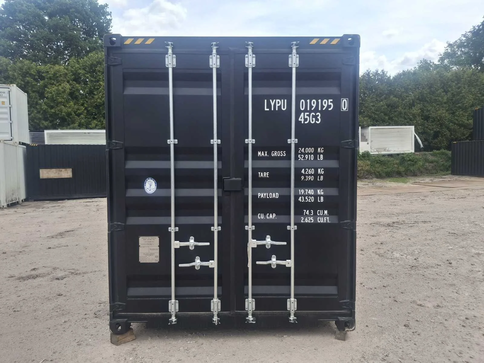 2025 rhino-cross-containers 40 ft high cube zwart zeecontainer met 4 zijdeuren