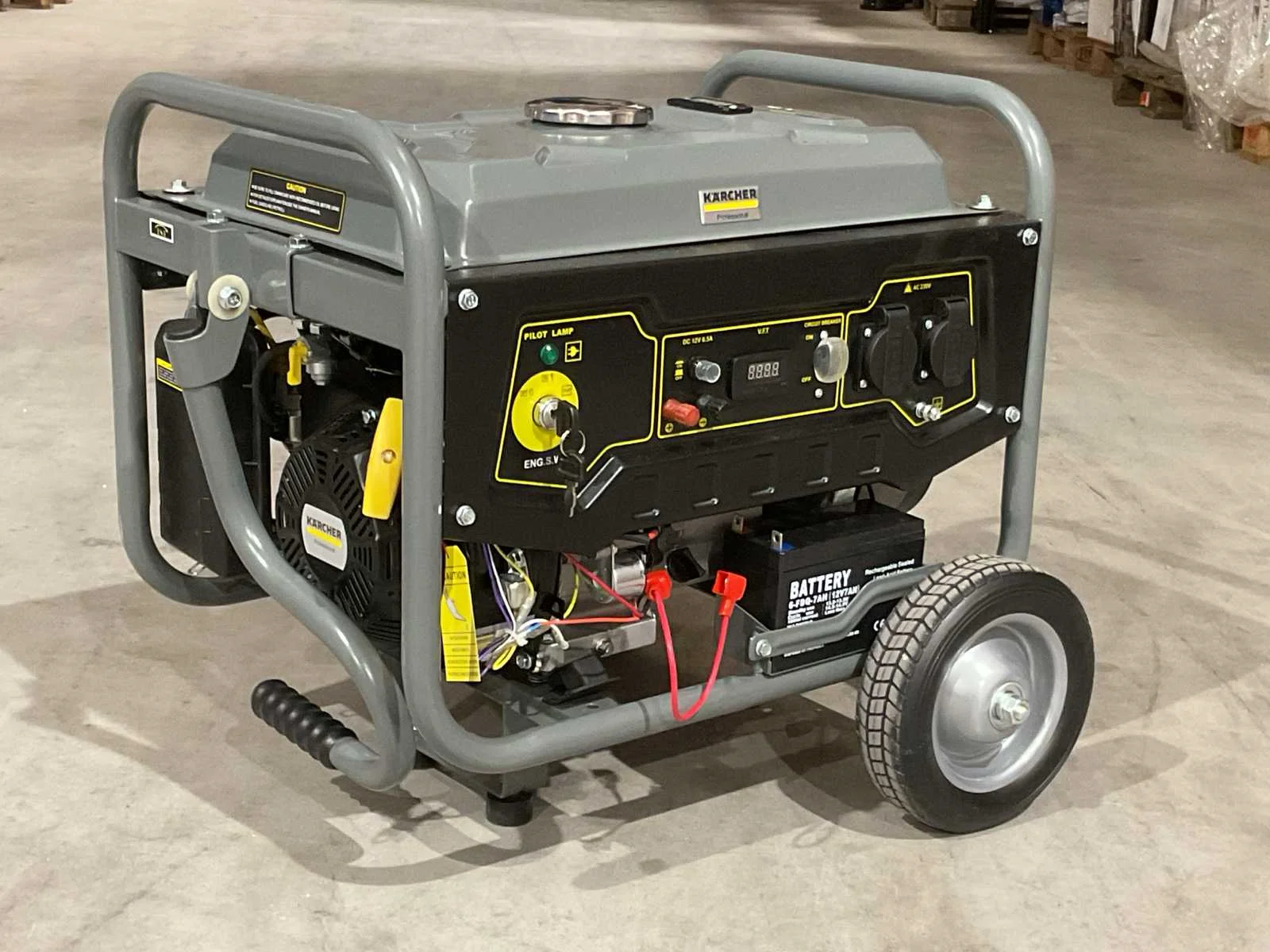 Voorzien van Spanning (Ph/V) 1 / 230; geluidsniveau (dB(A)) 74; Nominaal vermogen (kW)2,8; Vermogen (kW) 3; Type aandrijving: Benzine; Cilinderinhoud (cm³) 208; 1" adapter voor aansluiten van tuinslangen aan de drukzijde (kW/per uur) 4 / 5,4; Brandstofverbruik (l/u) 2,3; Tankinhoud (l) 15; Looptijd bij 50% output (u) 12; Looptijd bij 100% output (u) 6,5; DC-uitgang (12 V); Beschermingsklasse IP 23; Lage olie- en overbelastingsbeveiliging; Brandstofmeter; Eenfase-aansluiting type F (Schuko); Automatische spanningsregeling (AVR); Ongebruikt in doos Merk: Kärcher Type: PGG 3/1 Bouwjaar: 2025 Capaciteit.: 2.8kVA Benzine: true Motorvermogen (kW): 3kW Luchtgekoeld: true Mobiel: true Machinegewicht: 56.9kg Totale afmeting L: 7150mm Totale afmeting Breedte: 480mm Totale afmeting Hoogte: 470mm