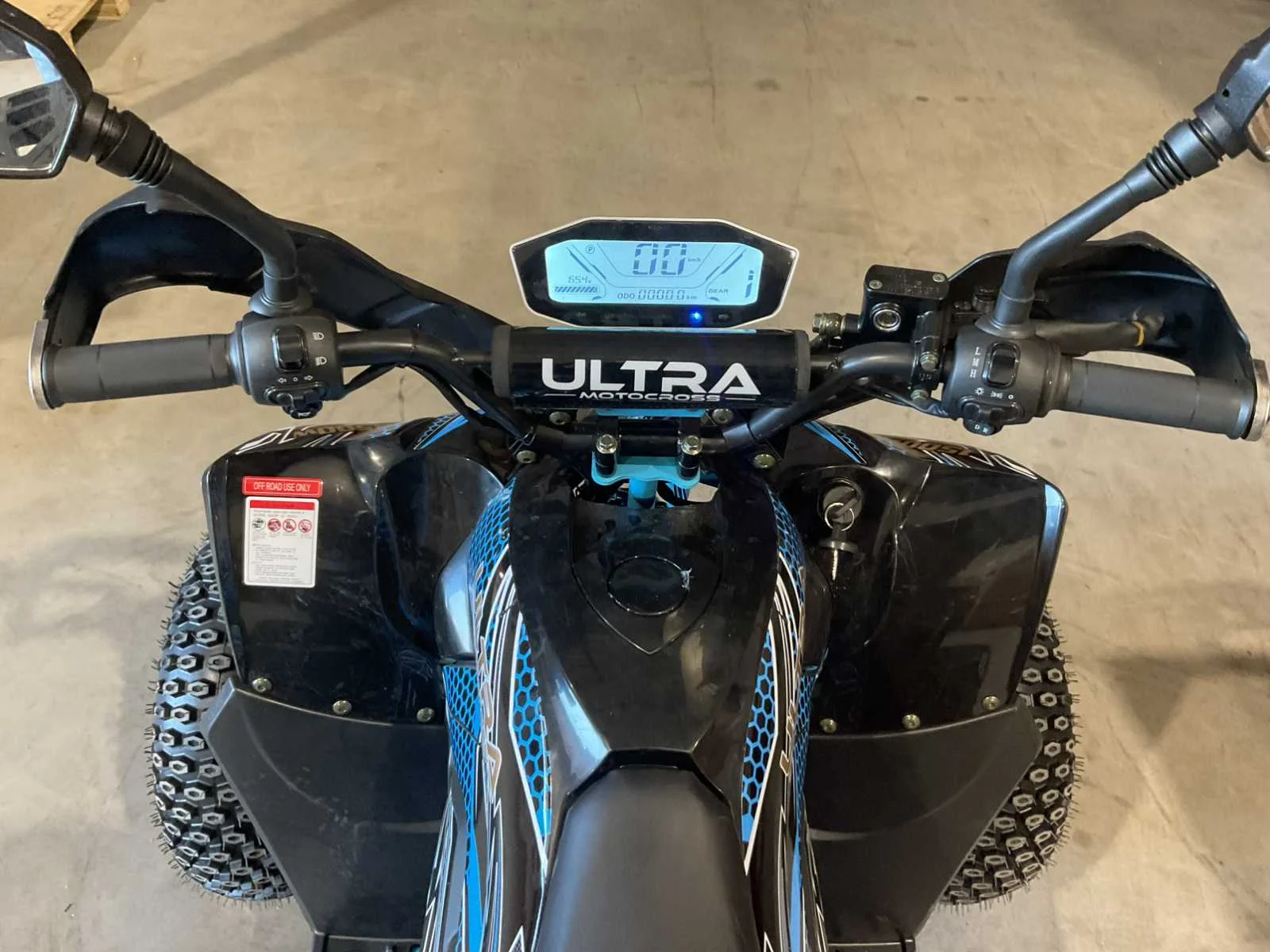 Voorzien van 60V 1500W elektrische motor; 3 verschillende snelheden; boost mode; led scherm; bandenmaat 8” inch; 2 sleutels; ongebruikt in krat (transport afmetingen 145x85x65 cm 120kg) Merk: Ultra Motocross Model: ATV005E Product type: ATX 1500 BL Gewicht: 110kg Aantal sleutels: 2 Transmissie: Automaat Bouwjaar: 2025 Brandstof: Elektrisch Kleur: Blauw