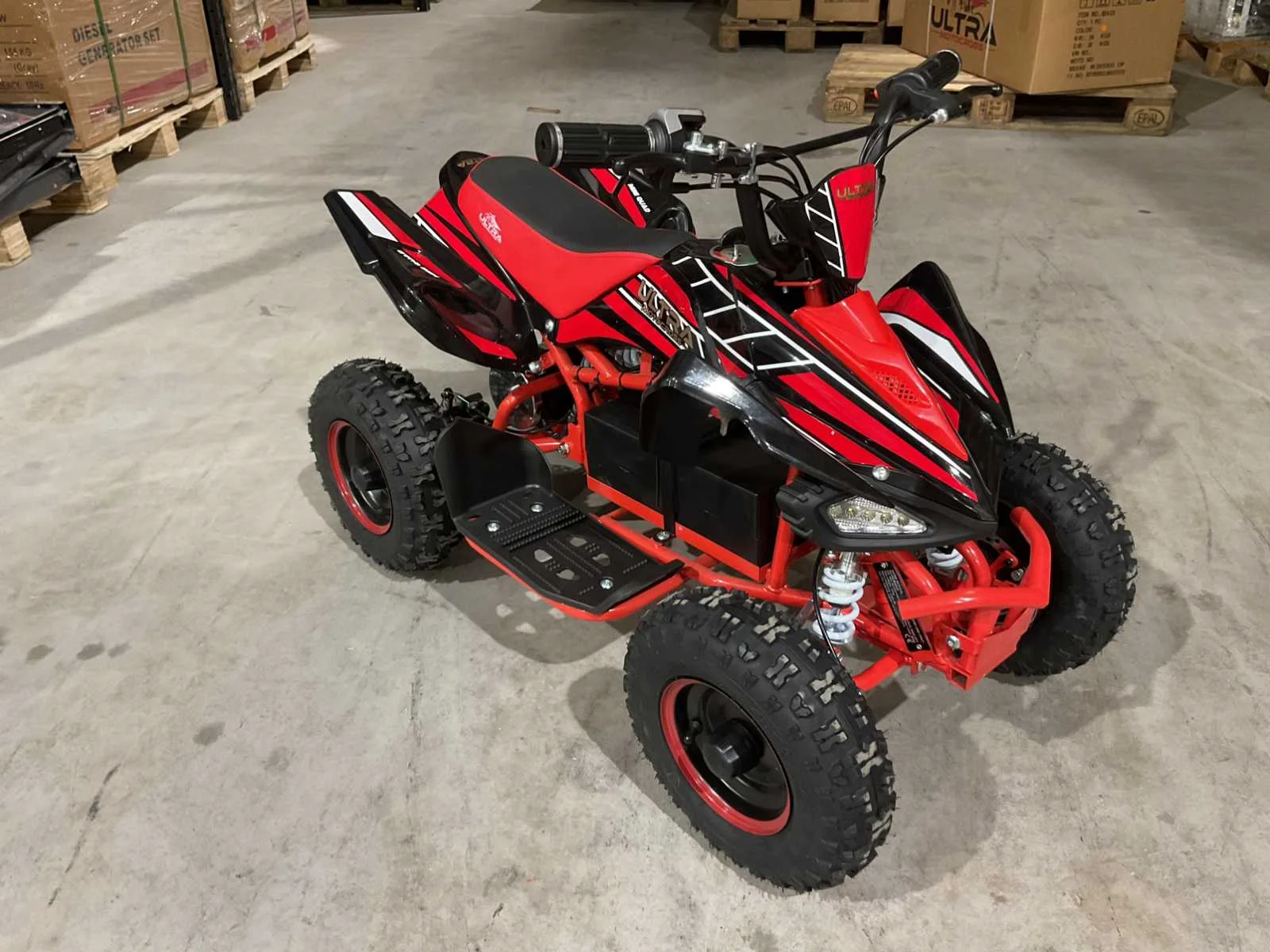 Voorzien van 1000W 36V elektrische motor; ouderen sleutel 3 verschillende snelheden; achterwielaandrijving; bandenmaat 6” inch; 2 sleutels; ongebruikt in doos (transport afmetingen 100x55x45 cm 48kg) Merk: Ultra Motocross Model: MA03E Product type: ATX 1000 RD Gewicht: 45kg Aantal sleutels: 2 Transmissie: Automaat Bouwjaar: 2025 Vermogen (kW): 1kW Brandstof: Elektrisch Kleur: Rood