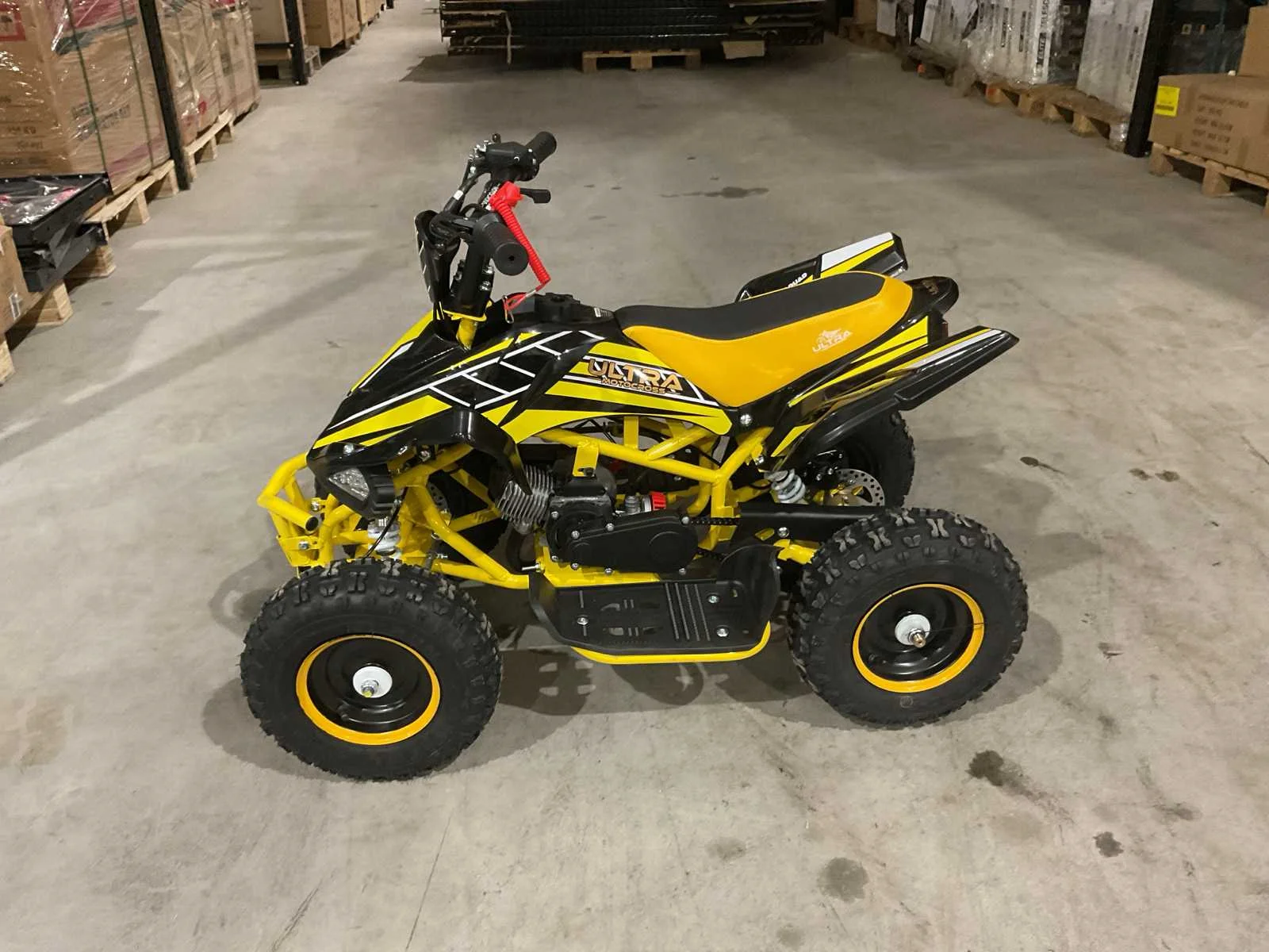 Voorzien van 49cc benzine motor; 2 takt; trek start; 3 verschillende snelheden; kill-switch; bandenmaat 6” inch; 2 sleutels; ongebruikt in doos (transport afmetingen 100x55x45 cm 36kg) Merk: Ultra Motocross Model: MA03 Product type: ATX 49 GE Gewicht: 34kg Aantal sleutels: 2 Transmissie: Automaat Bouwjaar: 2025 Cilinderinhoud: 49cc Brandstof: Benzine 2 Takt Kleur: Geel