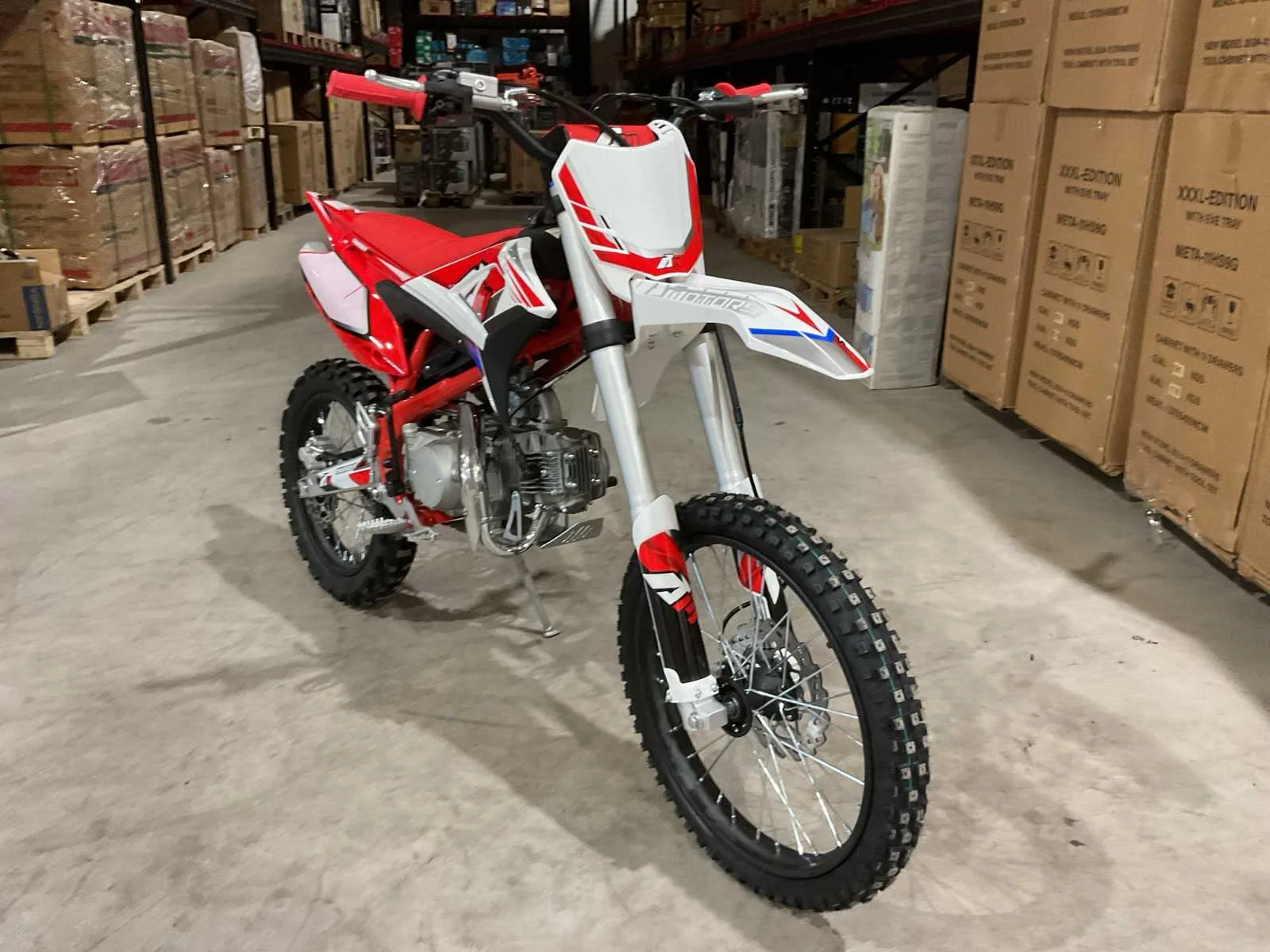 Voorzien van 125 cc motor; 4 takt; kick start; bandenmaat voor 19” inch achter 16” inch; hydraulische vering voor en achter; schijfremmen; ongebruikt in doos (transport afmetingen 150x40x75 cm) Merk: Ultra Motocross Type: Thunder 125 RD Brandstof: Benzine Cilinderinhoud: 125cc Gewicht: 91kg Kleur: Rood Transmissie: Schakel Aantal sleutels: 2