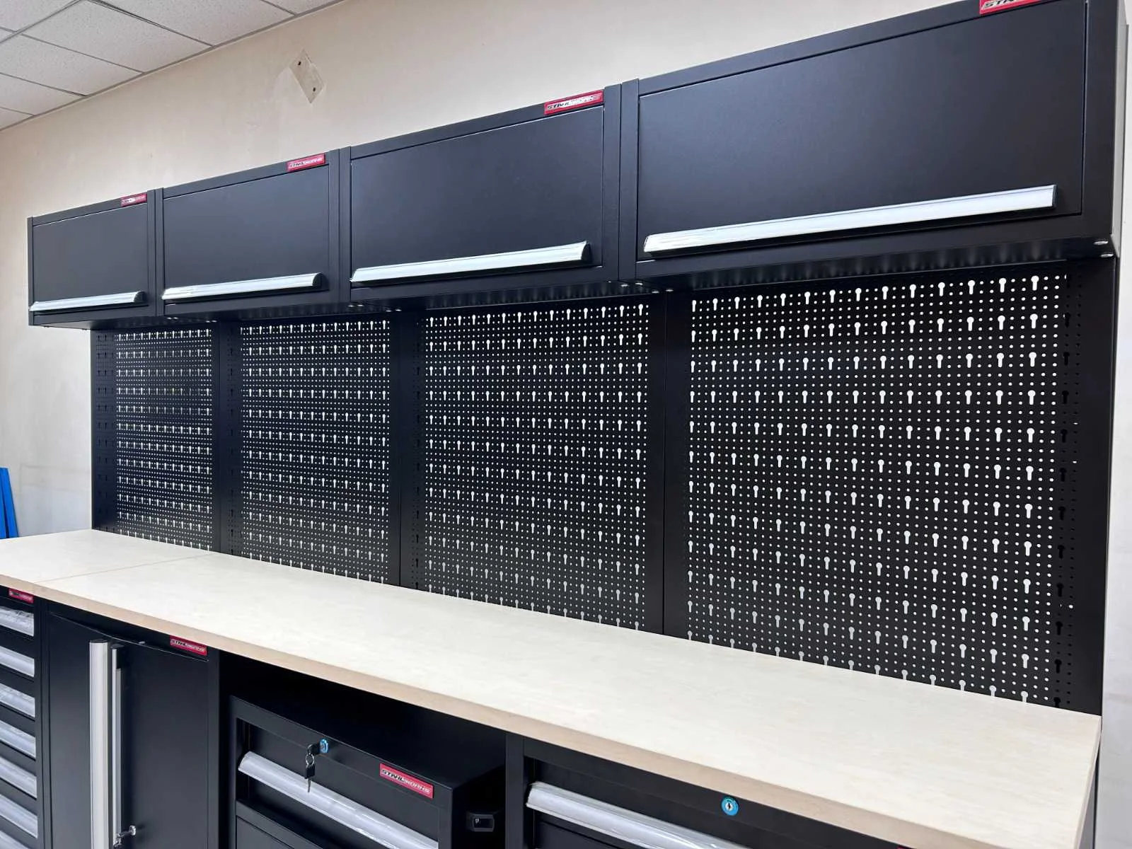Voorzien van poeder coating; 30 mm houten werkblad; kleur zwart; ongebruikt in dozen (transport afmeting 1,75 m3) Merk: Stahlworks Model: OS-26 Product type: 300x55x203 cm Materiaal: SPCC steel