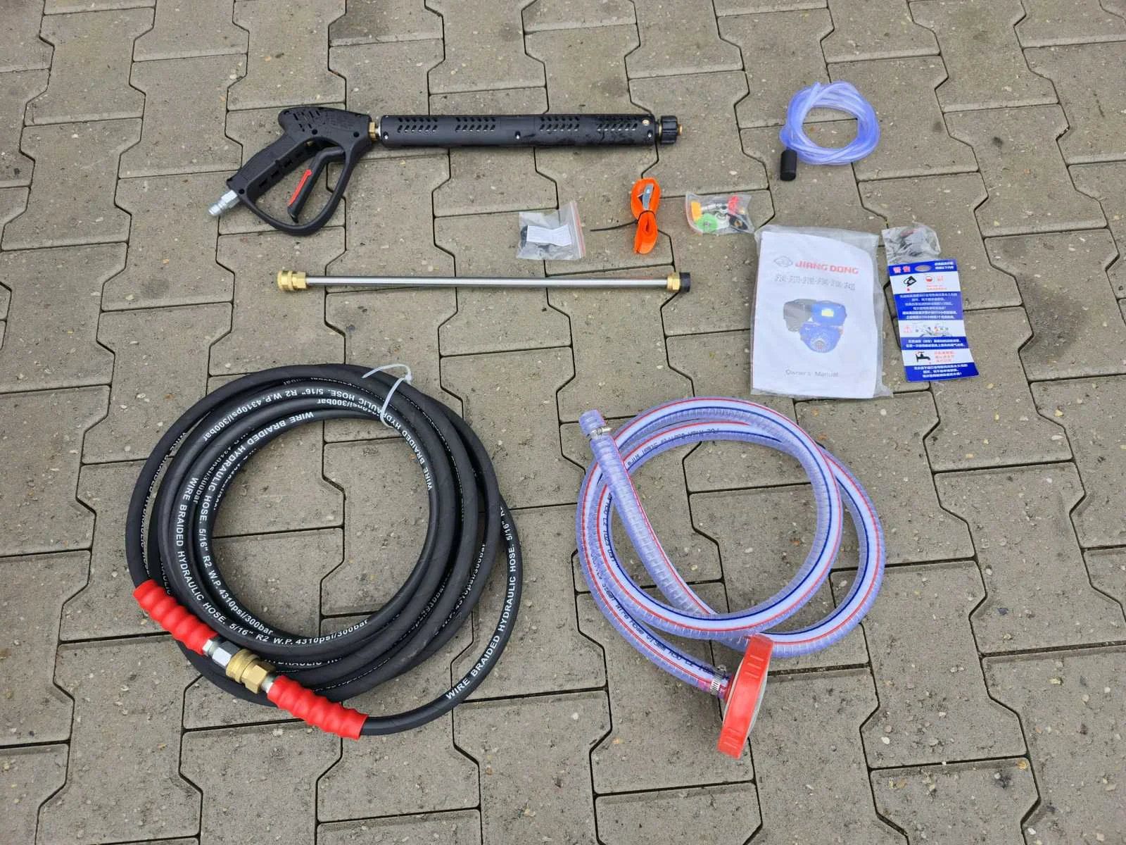 Voorzien van warmwater met 700 liter buffertank; instelbare temperatuur tot maximaal 90 °c; RVS diesel gestookt brandersysteem; max werkdruk 250 bar; 2x LED werklamp; watertank; hogedrukslang lengte 17 meter; hogedruk spuitlans; elektrische start; 15 pk 4-takt benzinemotor; 4 extra nozzles; venturi ventiel aansluiting voor toevoeging chemische vloeistof; ongebruikt Merk: Rhino-Cross Type: Industrial 250 bar Bouwjaar: 2025 Maximale werkdruk: 250bar Temperatuurbereik min.: 0°c Temperatuurbereik max.: 90°c Dieselgestookt: true Mobiel: true Vermogen: 11kW Eigen gewicht: 300kg Totale afmeting L: 2220mm Totale afmeting Breedte: 1140mm Totale afmeting Hoogte: 1200mm