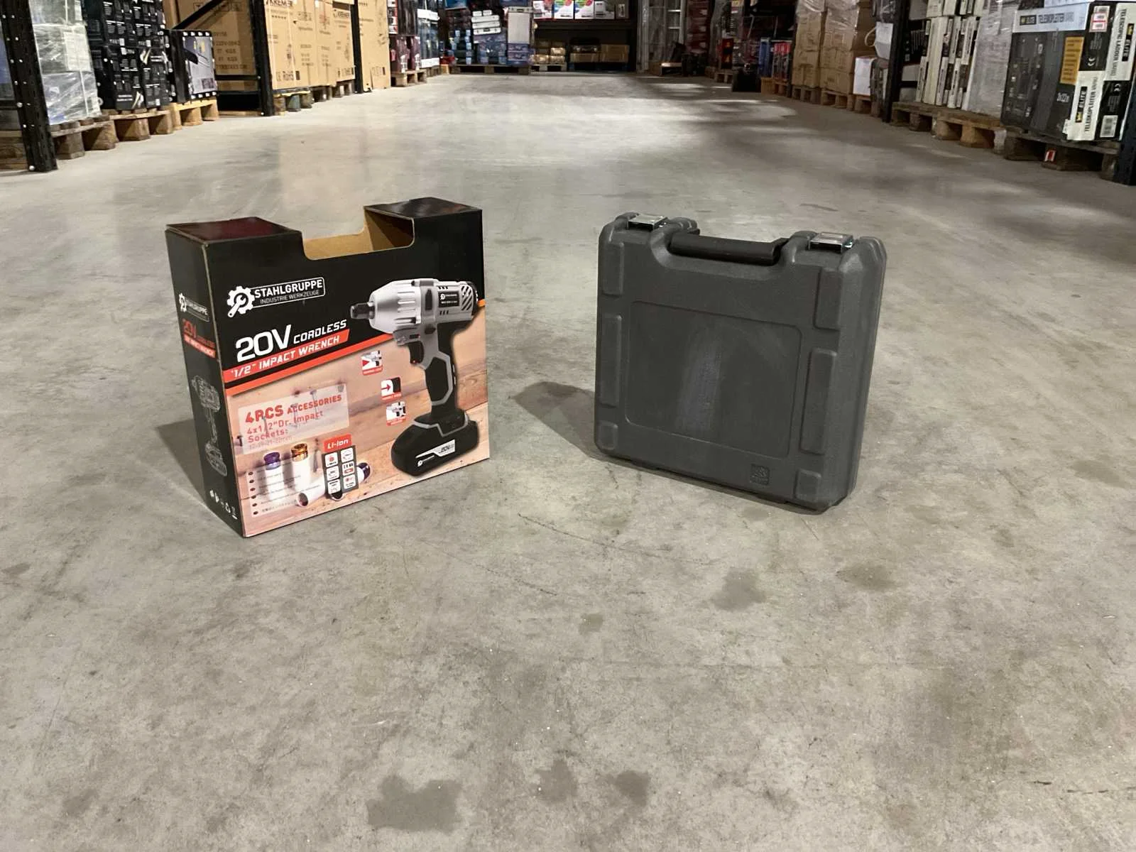 Voorzien van 4x 1/2” Dr. Impact sockets 17-19-22mm / 0-3000rpm / 0-3000b/Min / werk verlichting / 330N.m / li-ion 2.0Ah accu / oplader 100-240vac 50/60Hz / batterij indicatie lampjes / transport afmetingen 4,16Kg / 315x100x300mm Merk: Stahlgruppe Type: 20V Cordless Bouwjaar: 2025 Accuspanning: 20V Aantal accu's: 2 Accu type: Li-ion Accu lader: true Met koffer: true