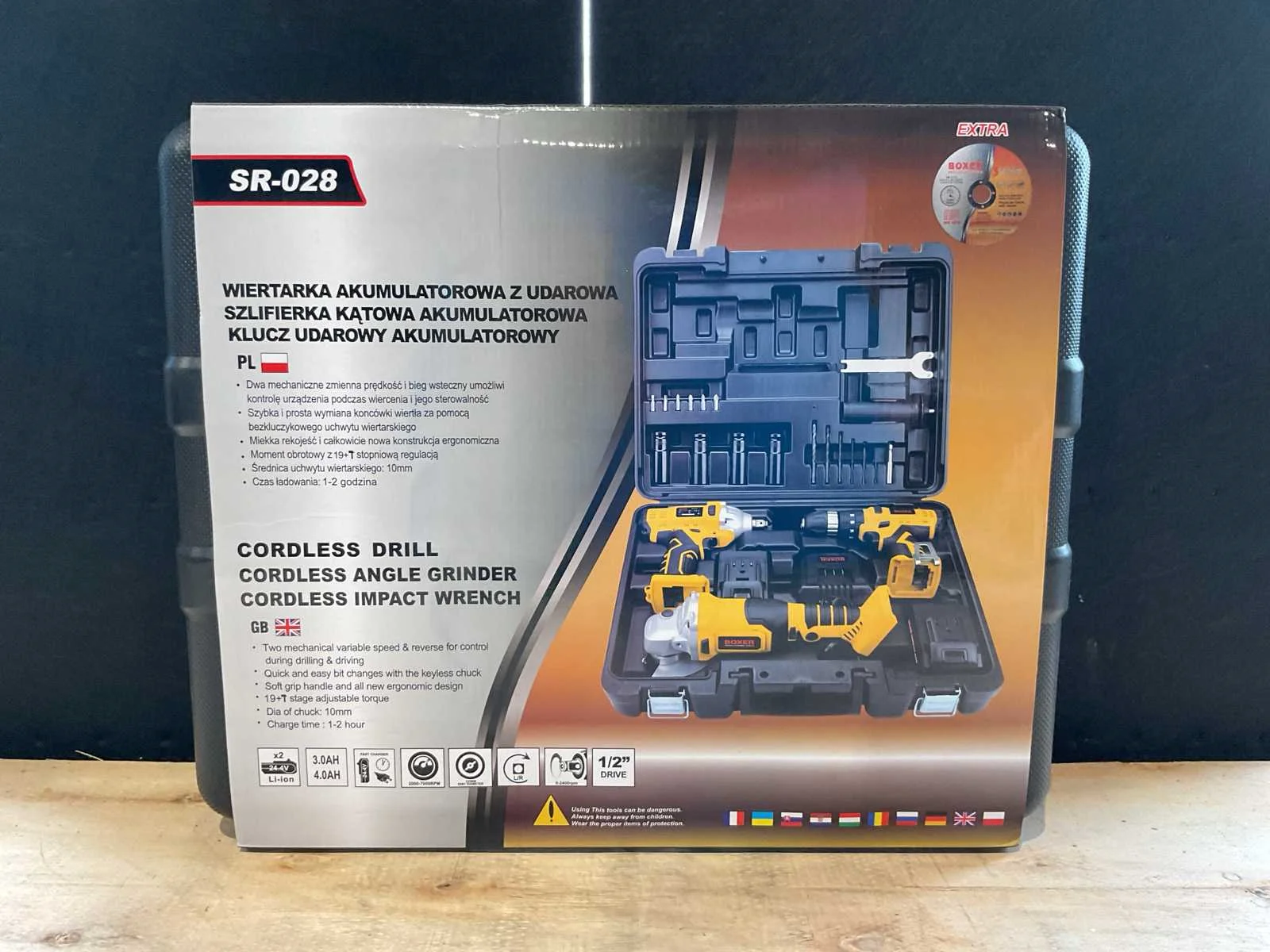 Merk: Boxer Type: SR-028 Bouwjaar: 2025 Kleur: Geel Gewicht: 7.88kg Lengte: 48cm Breedte: 14cm Hoogte: 38cm Accu lader: true Met koffer: true Accuspanning: 24.4V Aantal accu's: 2