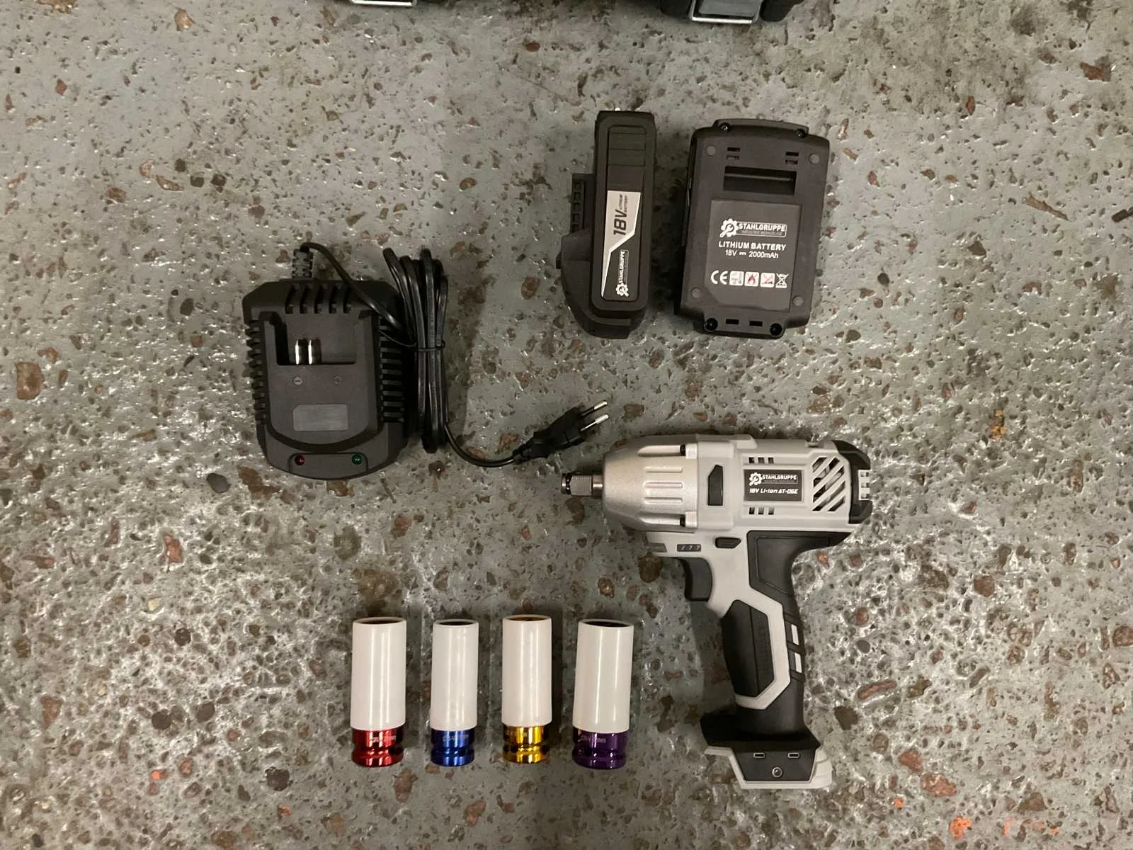 Ongebruikt Merk: Stahlgruppe Type: Impact Wrench Bouwjaar: 2024 Model: AT-05E Accuspanning: 18V Accu type: Lithium Aantal accu's: 2 Accu lader: true
