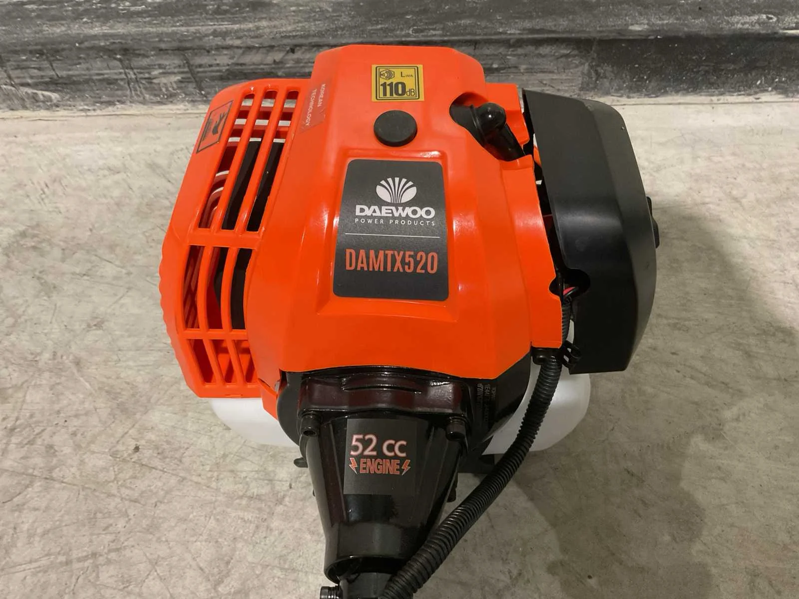 Voorzien van nylon lijn; heggen trimmer; ketting zaag; trim blad; Ongebruikt in doos (Afmeting transport verpakking 325x1095x305 mm lxbxh, gewicht 15 kg) Merk: Daewoo Type: DAMTX520 Bouwjaar: 2025 Brandstofmotor aangedreven: true Brandstof: Benzine Motorvermogen (kW): 1.45kW Eigen gewicht: 14.7kg Totale afmeting L: 325mm Totale afmeting Breedte: 1095mm Totale afmeting Hoogte: 305mm