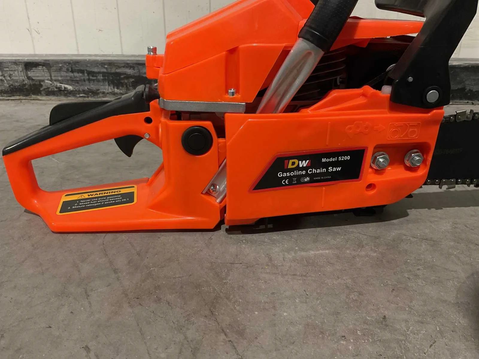 Voorzien van Stationair toerental: 3000rpm; Max. snijsnelheid: 10.000rpm; Inhoud brandstoftank: 580 ml; Krachtige motor: 52 cc; Zaaglengte: 52 cm; Brandstof: 1:35 (loodvrije benzine 35: twee-takt olie 1); Ketting dikte: 0.058 "/ 1,47 mm; Kettingsteek: 0,325 "/ 8,25 mm; Olietank: 250 ml; Trillingen: 8,5 m / s ², K = 1,5 m / s²; Geluidsdrukniveau: EN ISO 22868: 101 db (A) K = 3,0 dB (A); Geluidsniveau: EN ISO 22868: 2003: 114 db (A); beschermhoes; kettingpijlen; bougiesleutel; schroevendraaier; 2 Allen sleutels Merk: DW Type: DW-5200 Bouwjaar: 2025 Eigen gewicht: 6.5kg Totale afmeting L: 91mm Totale afmeting Breedte: 26.5mm Totale afmeting Hoogte: 28.5mm