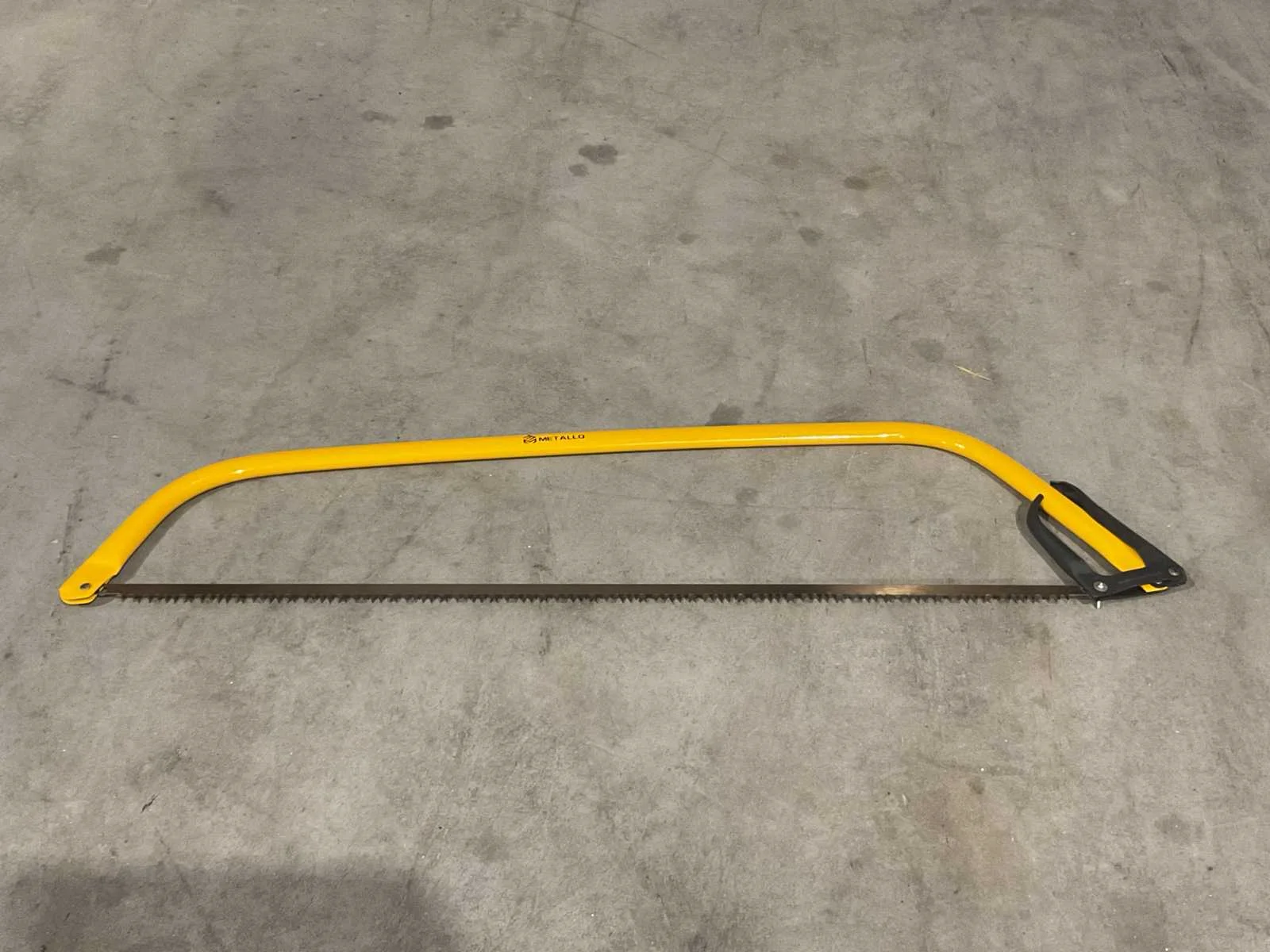 Voorzien van Onder hoge frequentie gelaste buisboog; Lichtgewicht; Kunststof handbescherming; Totale lengte: 100 cm Lengte zaag: 90 cm; ongebruikt per 12 in doos Merk: Metallo Model: SAW Kleur: Geel Gewicht: 11kg Lengte: 104cm Breedte: 24cm Hoogte: 22.5cm