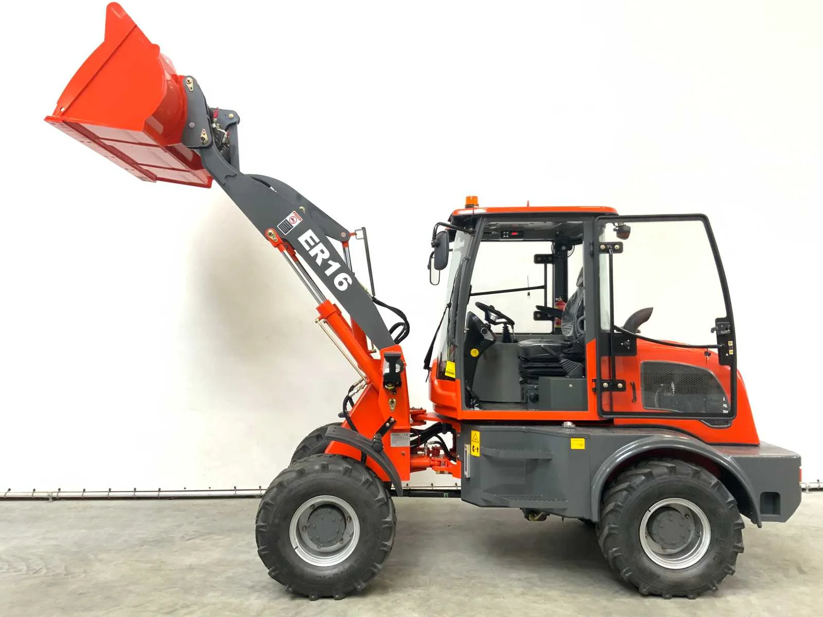 Hydraulische snelwissel; rated load 1600kg; maximale hefhoogte 2980mm; Motervermogen 50PK; Transmissie 2 versnellingen Torque Converter Max. rijsnelheid: 22 km/h; 4WD; Luxe volledig gesloten cabine; V.v. 1 deur; te openen raam; geveerde stoel; radio; ventilator en verwarming; Kantelbare cabine ivm vereenvoudigd onderhoud; graafbak van 0.80 m3 en palletvorken; totale afmeting met graafbak; 6152 Merk: Everun Type: ER16 Bouwjaar: 2025 Merk motor: XINCHAI A498 BT1 Motorvermogen (kW): 36.80kW Aantal cilinders: 4 Brandstof: Diesel Graafbak afm. b: 2000mm Bandenmaat: 23.5/70-16 Cabine: true Afgelezen urenstand: 1 Eigen gewicht: 3800kg Totale afmeting L: 5240mm Totale afmeting Breedte: 1900mm Totale afmeting Hoogte: 2600mm