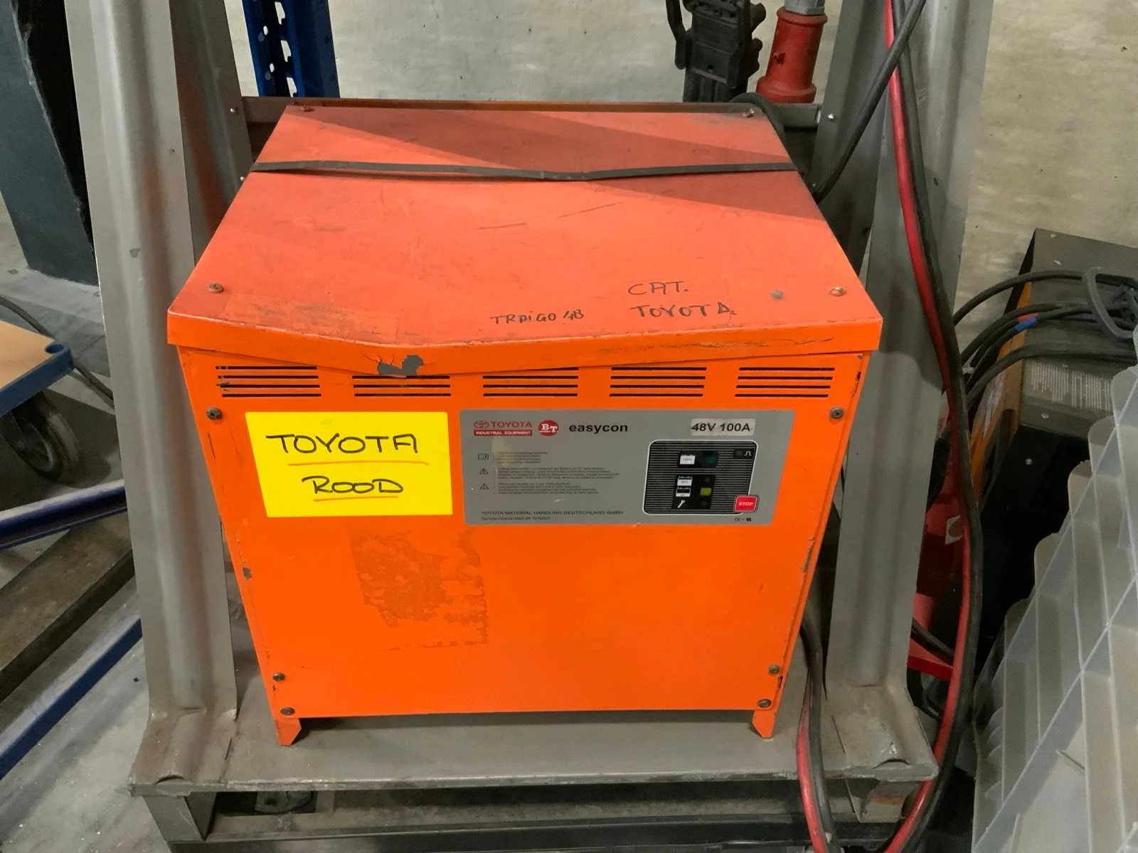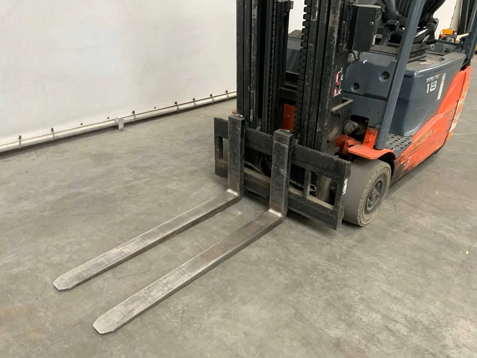 Accu van bouwjaar 2023; 24/6 PzSH 750; 48V; verstelbare lepels; Merk: Toyota Type: 8FBET18 Bouwjaar: 2009 Brandstof: Elektrisch Aantal wielen: 3 Accu lader: true Free-lift: true Side-shift: true Triple mast: true Eigen gewicht: 3532kg Hefvermogen: 1800kg Lepellengte: 1150mm Max. hefhoogte: 4700mm Hefhoogte: 4700mm Vol rubber banden: true Minimale doorrijhoogte: 2150mm Totale afmeting L: 3200mm Totale afmeting Breedte: 1070mm Totale afmeting Hoogte: 2150mm