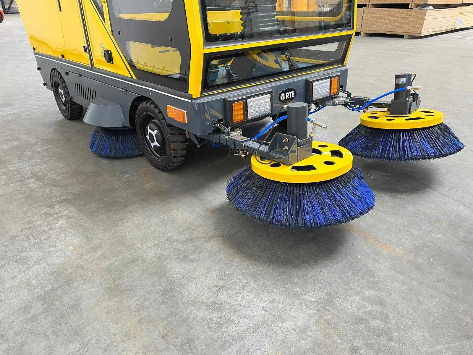 Werkbreedte: 2200mm; hoofdborstel breedte 800mm; Met accu lader; batterij capaciteit 48v/200AH; opvangbak capaciteit 240 liter; watertank 400 liter; ongebruikt; claxon; met waternevel sproeisysteem , antistof , dubbele veegborstel voor; knipperlamp bovenop is magnetisch verstelbaar; draadje is afgescheurd; beursmodel; let op 1 voorborstel afgebroken ! Merk: RTE Type: ST400 Bouwjaar: 2025 Afgelezen urenstand: 0 Elektrisch aangedreven: true Brandstof: elektrisch Met oplader: true Eigen gewicht: 1500kg Schoonwatertank: true Inhoud waterreservoir: 400l Max. snelheid: 12km/h Werkbreedte: 2200mm Totale afmeting L: 3300mm Totale afmeting Breedte: 2300mm Totale afmeting Hoogte: 2050mm
