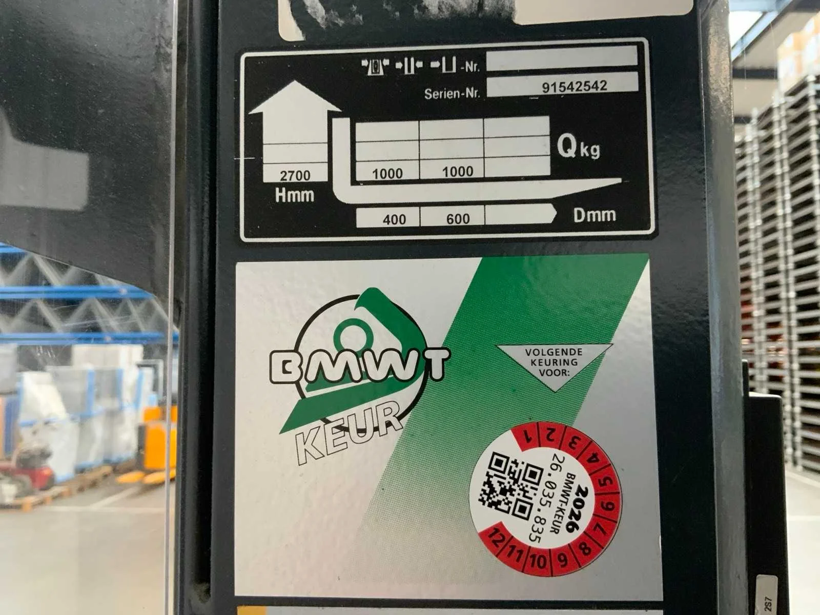 Afmeting kan iets afwijken; zonder oplader; accu van bouwjaar 2022; Merk: Jungheinrich Type: EKS110 Bouwjaar: 2009 Hefvermogen: 1000kg Hefhoogte: 2700mm Lepellengte: 1200mm Totale afmeting L: 2900mm Totale afmeting Breedte: 1250mm Totale afmeting Hoogte: 2300mm