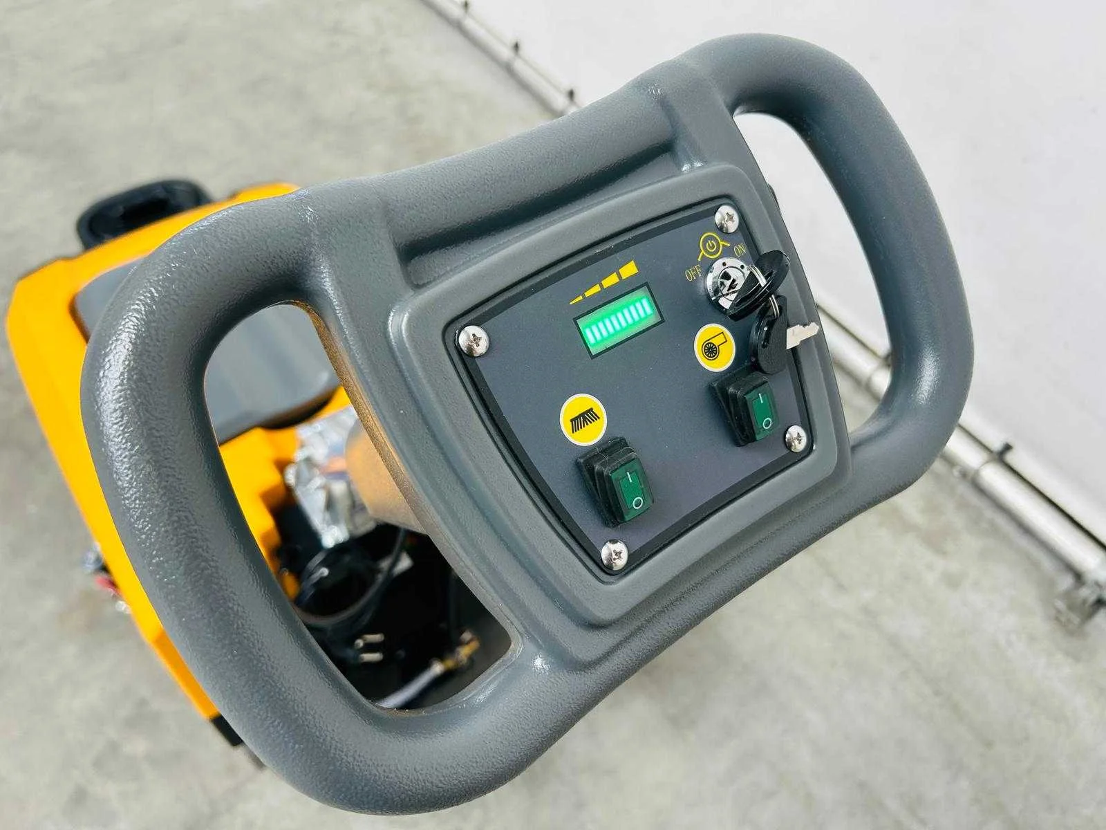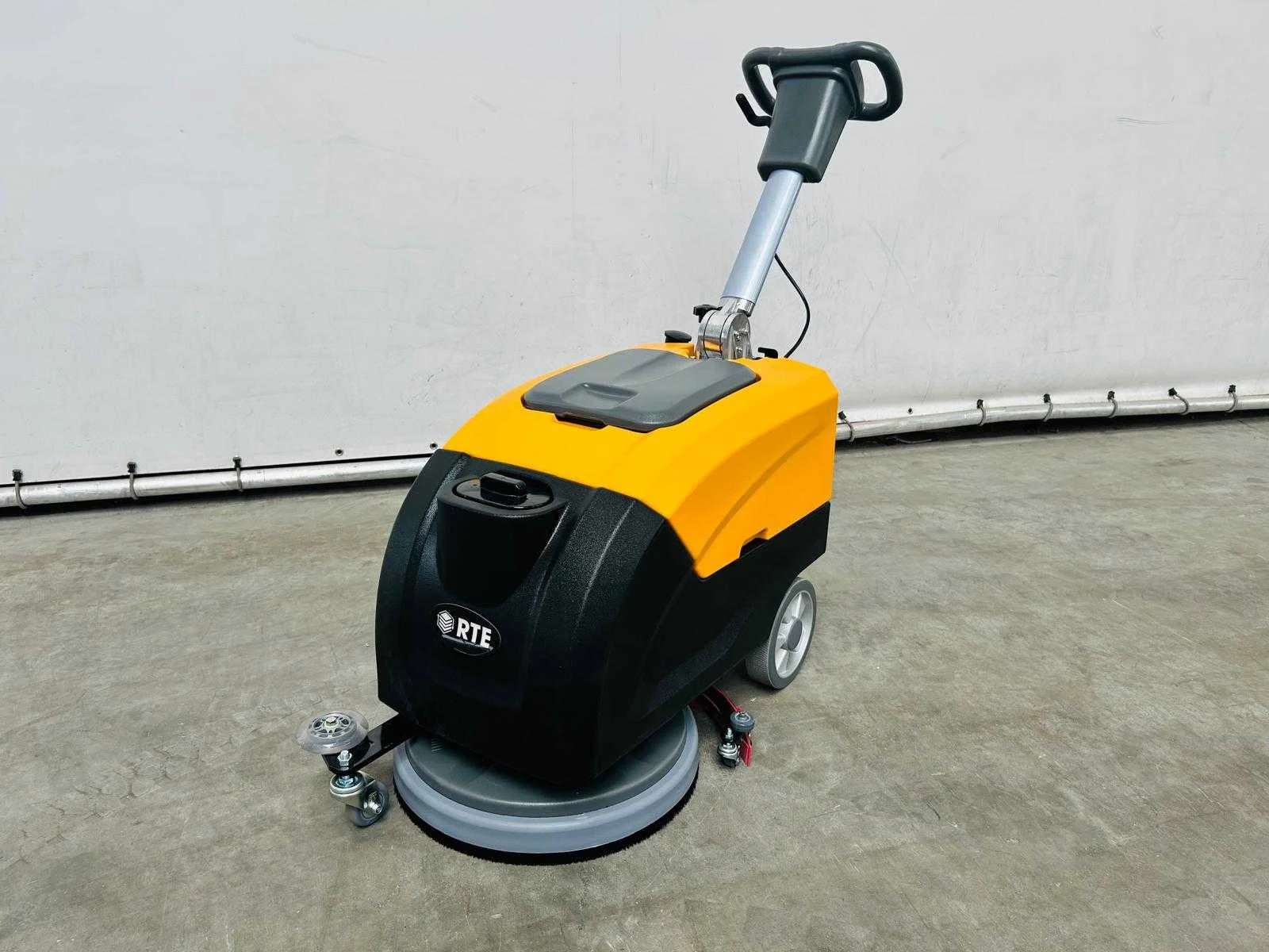 Disk brush 400mm; squeegee width 580mm; clear watertank 25L; Recovery 30L; work capacity 1500m/h; Voltage 12V; Battery 40Ah*2*12V; Power 900W; brush disk motor 400W; suction motor 500W; 2000RPM; batterij monitor; build-in Charger; manual; Merk: RTE Type: FS40 Bouwjaar: 2025 Werkbreedte: 400mm Elektrisch: true Aansluiting: 230V Accu lader: true Oplaadbaar: true Eigen gewicht: 75kg Totale afmeting L: 910mm Totale afmeting Breedte: 510mm Totale afmeting Hoogte: 800mm