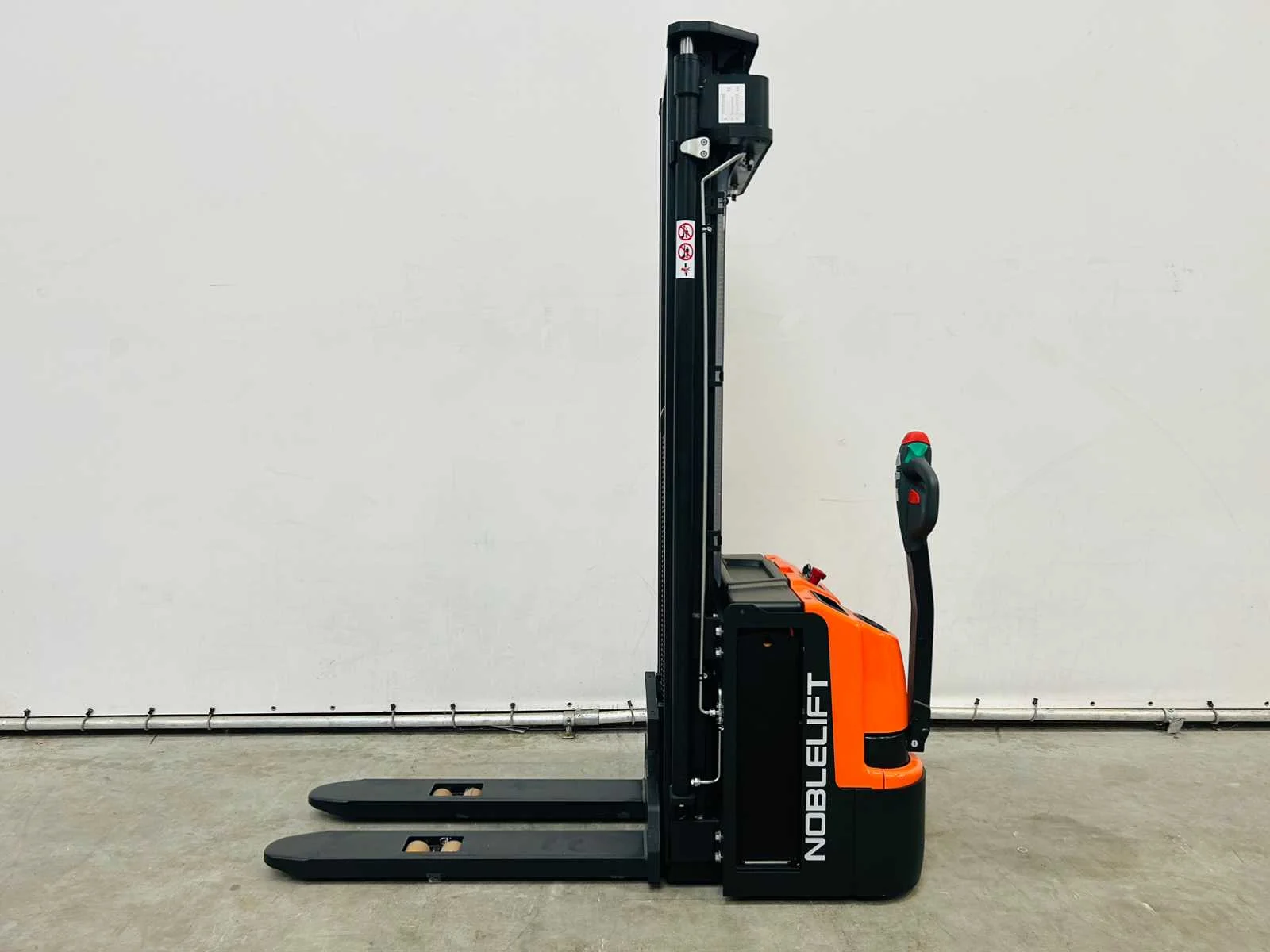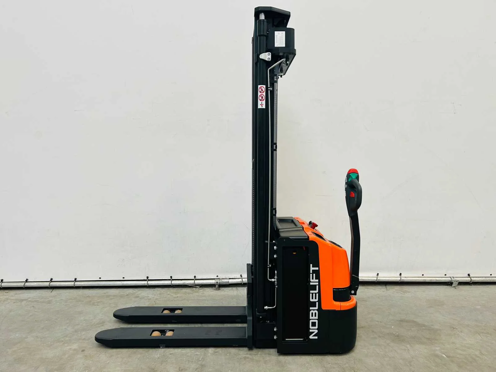 Dubbele frontrollers; noodstop; codeslot; handleiding; batterij indicator; 6785 Merk: Noblelift Type: PSE16L55 Bouwjaar: 2024 Hefvermogen: 1600kg Hefhoogte: 5500mm Lepellengte: 1140mm Afgelezen urenstand: 0 Eigen gewicht: 1400kg Minimale doorrijhoogte: 2420mm Totale afmeting L: 1820mm Totale afmeting Breedte: 820mm Totale afmeting Hoogte: 2420mm Meerij stapelaar: true Accu lader: true