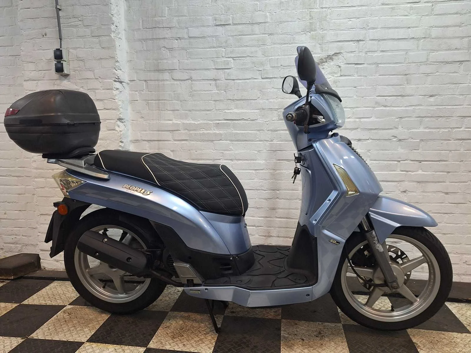 2 sleutels voor scooter en 1 sleutel voor topkoffer aanwezig. Accessoires: laag windscher en topkoffer. Merk: Kymco Model: 45 km bromscooter 4takt Type: People S Snelheid: 45km/h Kenteken: FH158D Datum eerste toelating: 21-04-2007 Bouwjaar: 2007 Kleur: blauw Afgelezen kilometerstand: 52176km