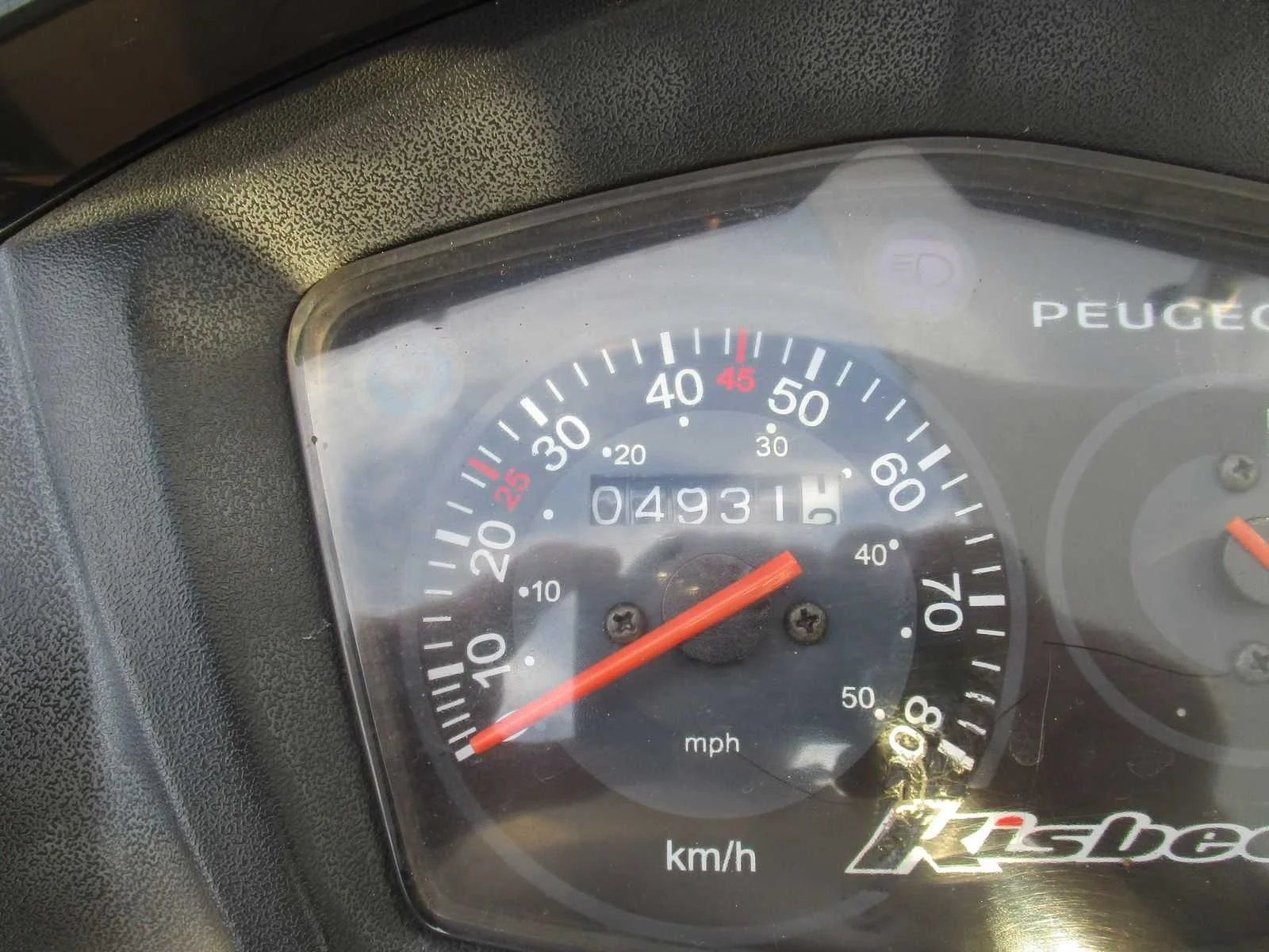 Snorscooter met 1 sleutel inclusief hoog windscherm. Scooter heeft enige tijd stilgestaan en moet weer aan de gang worden gemaakt. Compressie heeft ie, verdere technische staat onbekend. Merk: Peugeot Model: Snorscooter Type: Kisbee RS 4T Handelsbenaming: KISBEE Snelheid: 25km/h Kenteken: F-022-NS Datum eerste toelating: 2014-05-07 Bouwjaar: 07-05-2014 Transmissie: Automaat Brandstof: benzine Kleur: niet van toepassing Afgelezen kilometerstand: 4931km