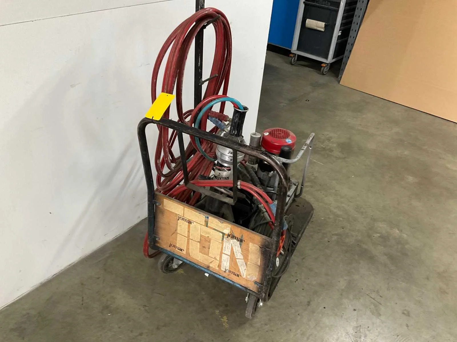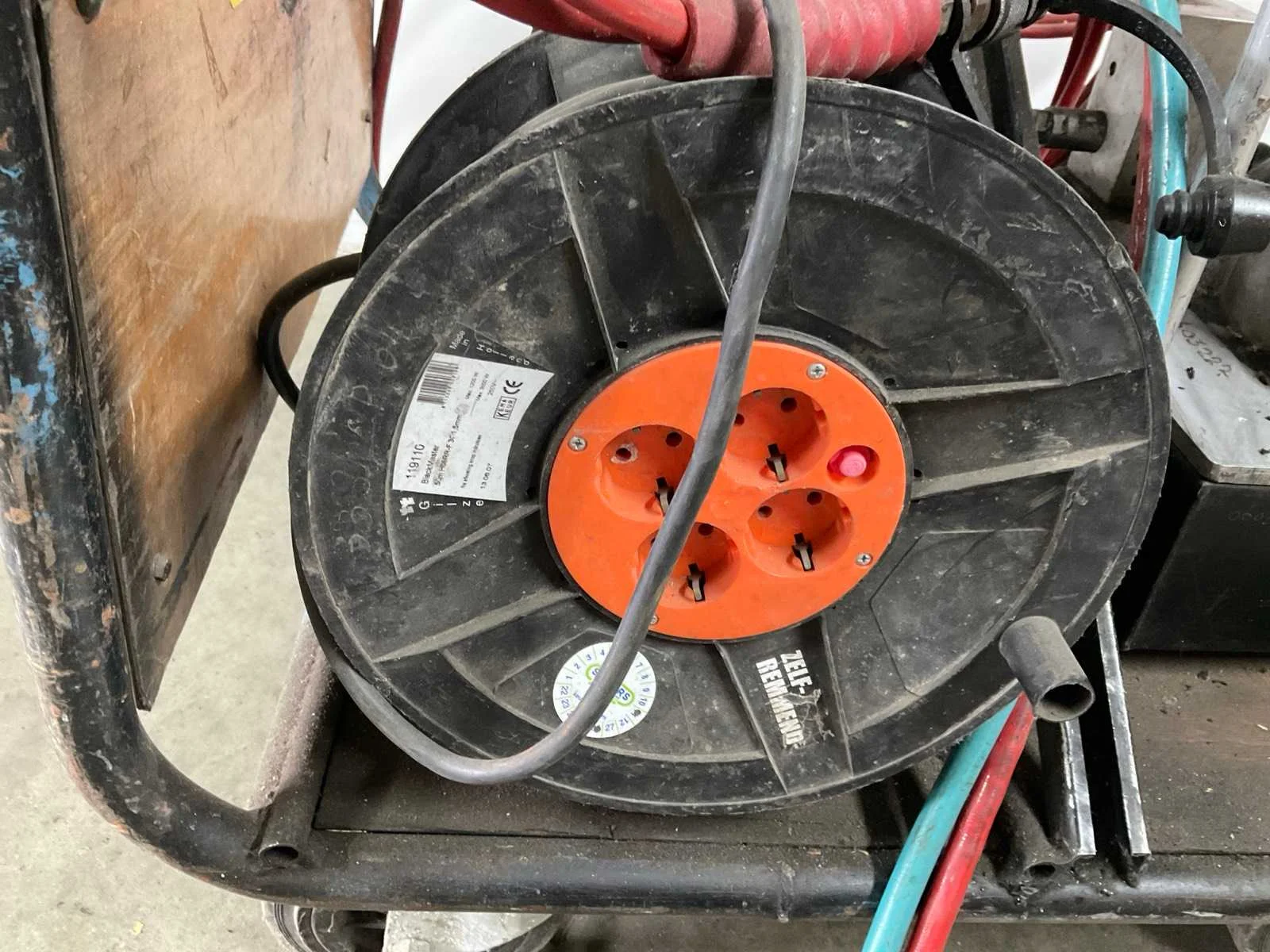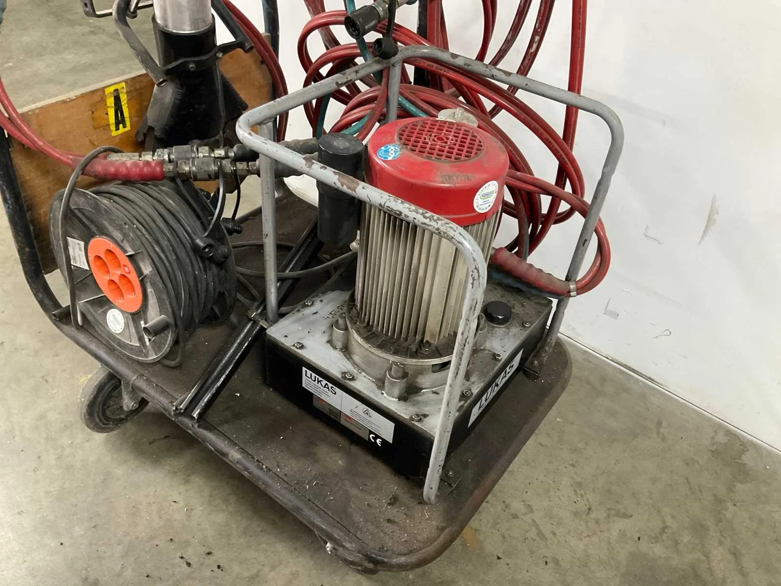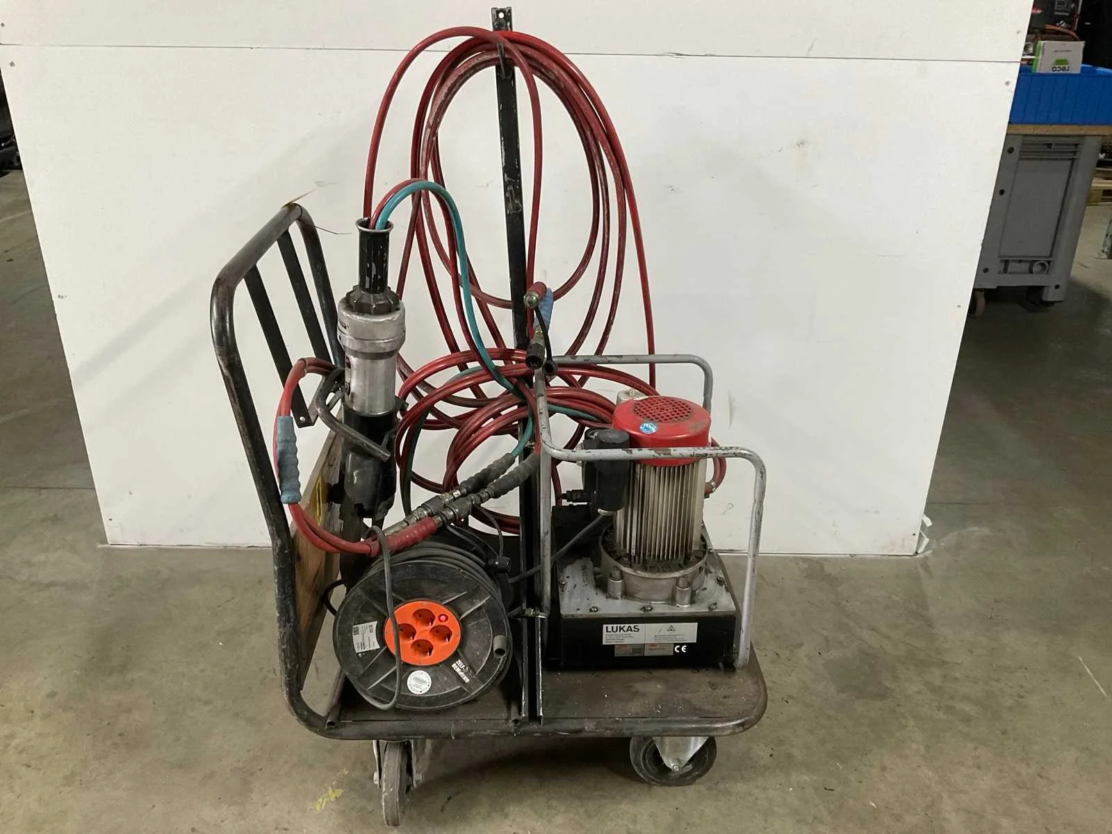 Lucas hydraulische schaar, elektrische powerpack en verlenghaspel op verrijdbaar onderstel Merk: Lucas Aansluiting: 220V Type: P 06-11-10-70