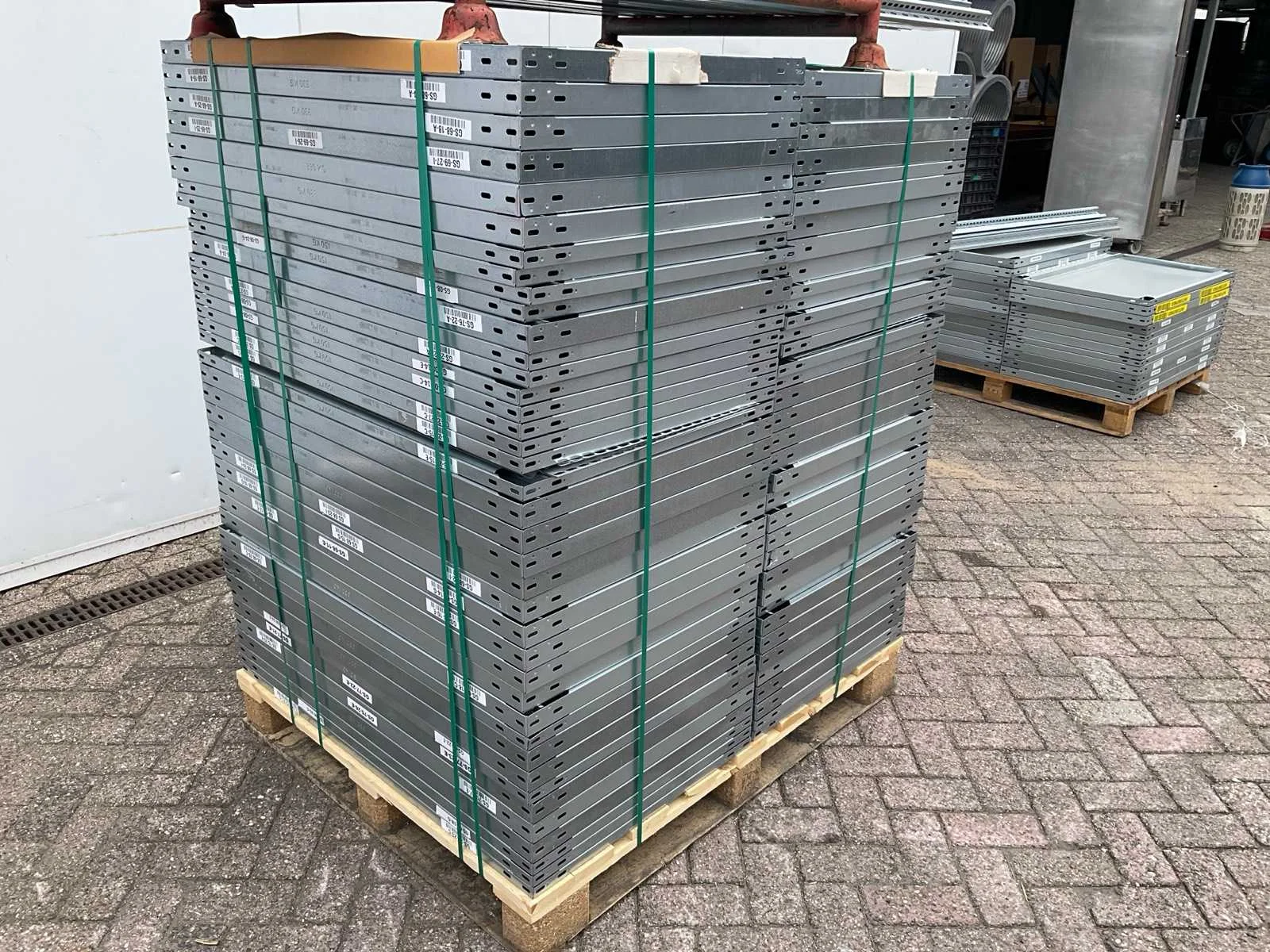 Kavels afkomstig van faillissement of bedrijfsbeëindiging, deze zijn niet gecontroleerd op werking of compleetheid. Wij adviseren u gebruik te maken van het kijk-moment om de staat en conditie van het kavel zelf te beoordelen. Aantal staanders: 40 Aantal legborden: 70 Totale afmeting Hoogte: 200cm Lengte: 100cm Breedte: 60cm Hoogte: 200cm