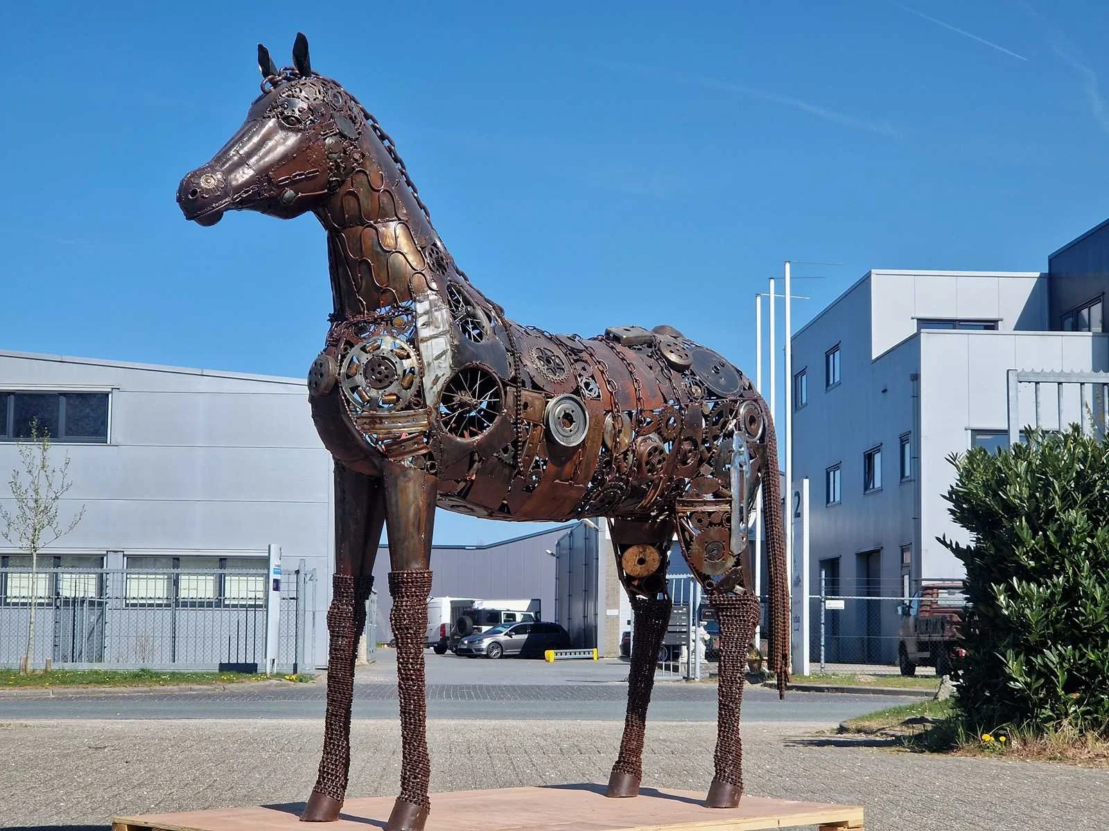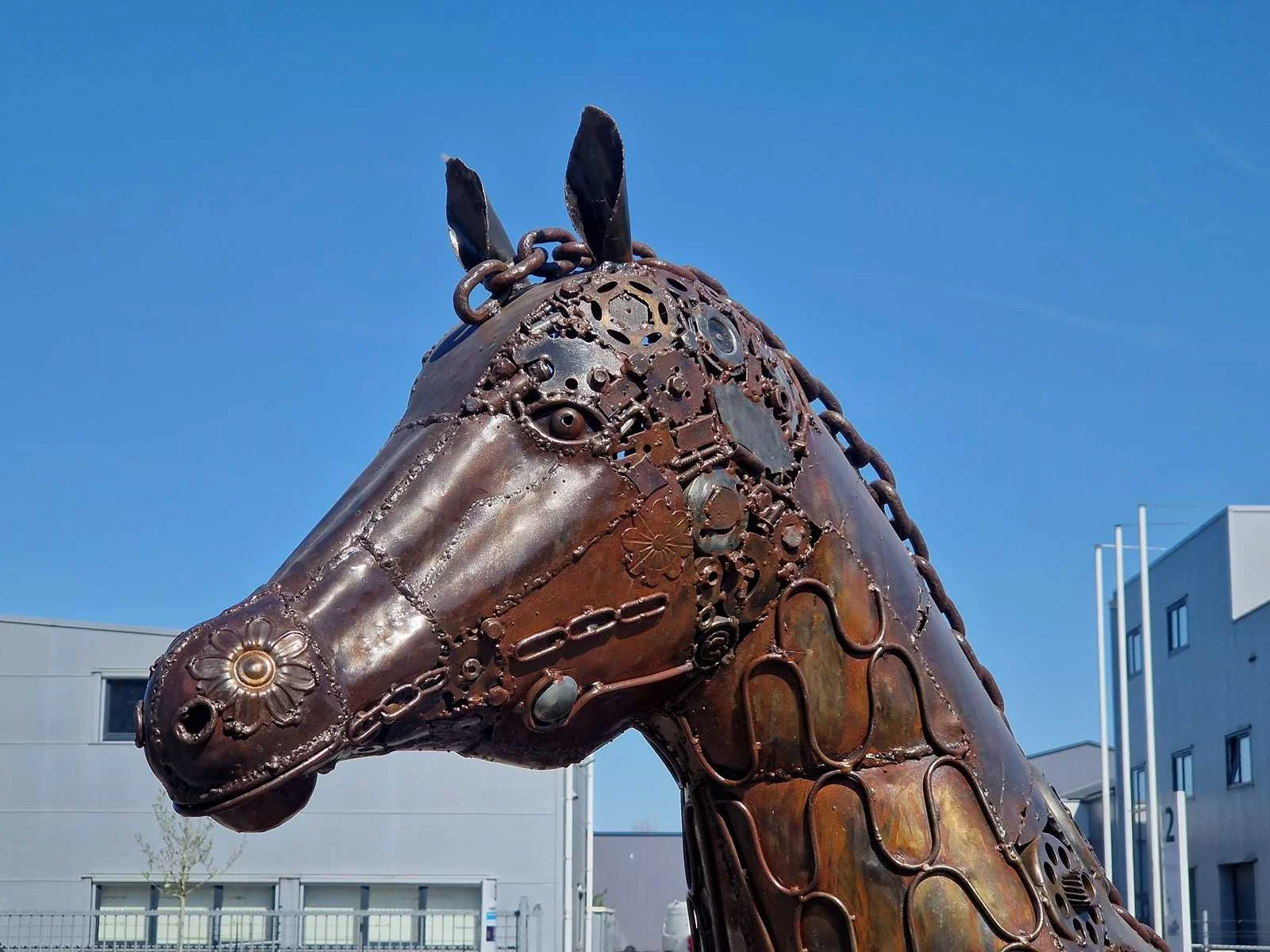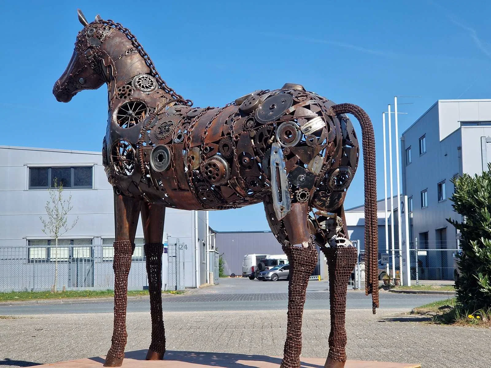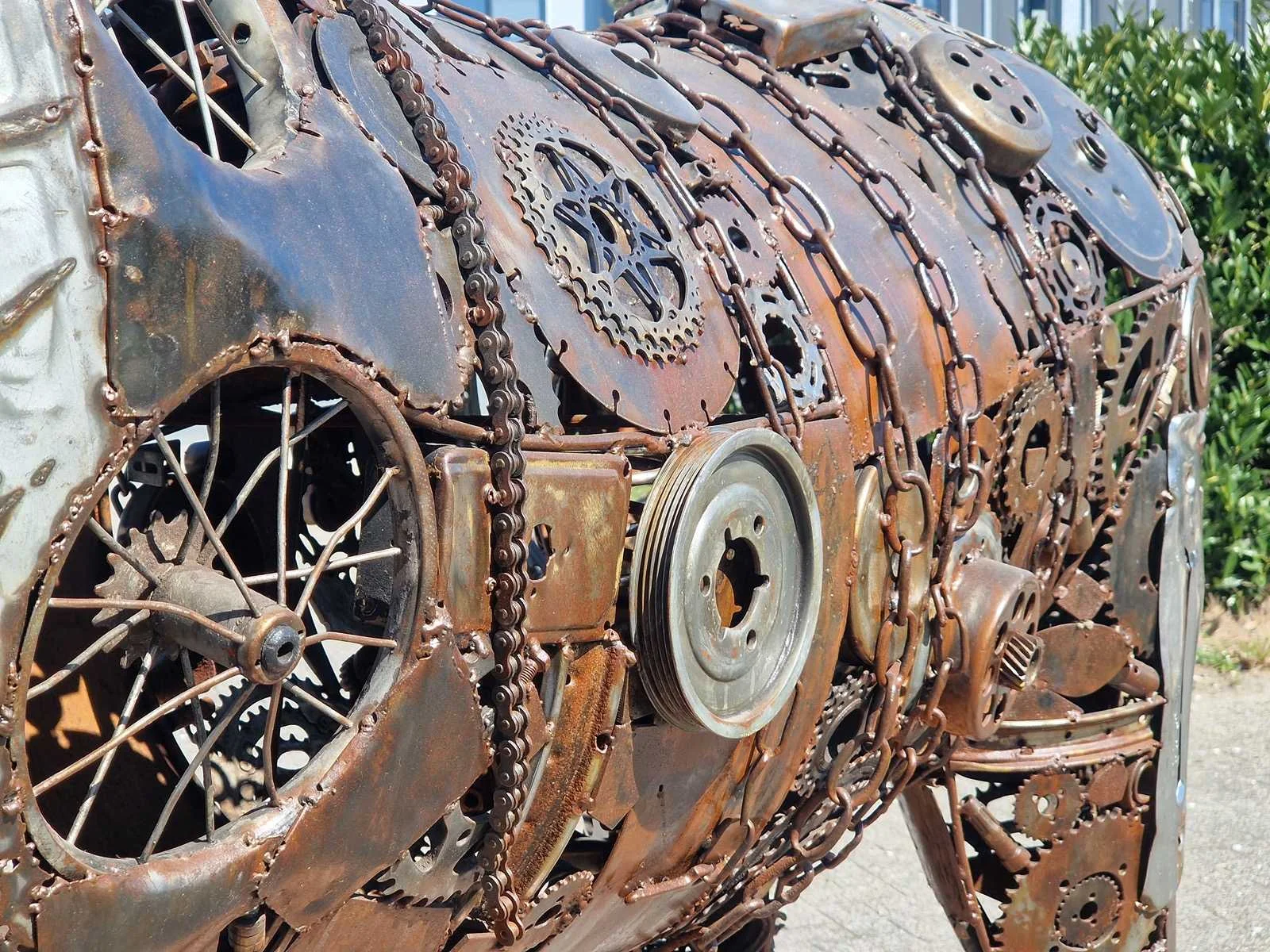 Handgemaakt tuinbeeld gemaakt van diverse metalen. Voorzien van een lichte anti-roest behandeling. Merk: Junk-art Lengte: 241cm Breedte: 49cm Hoogte: 219cm
