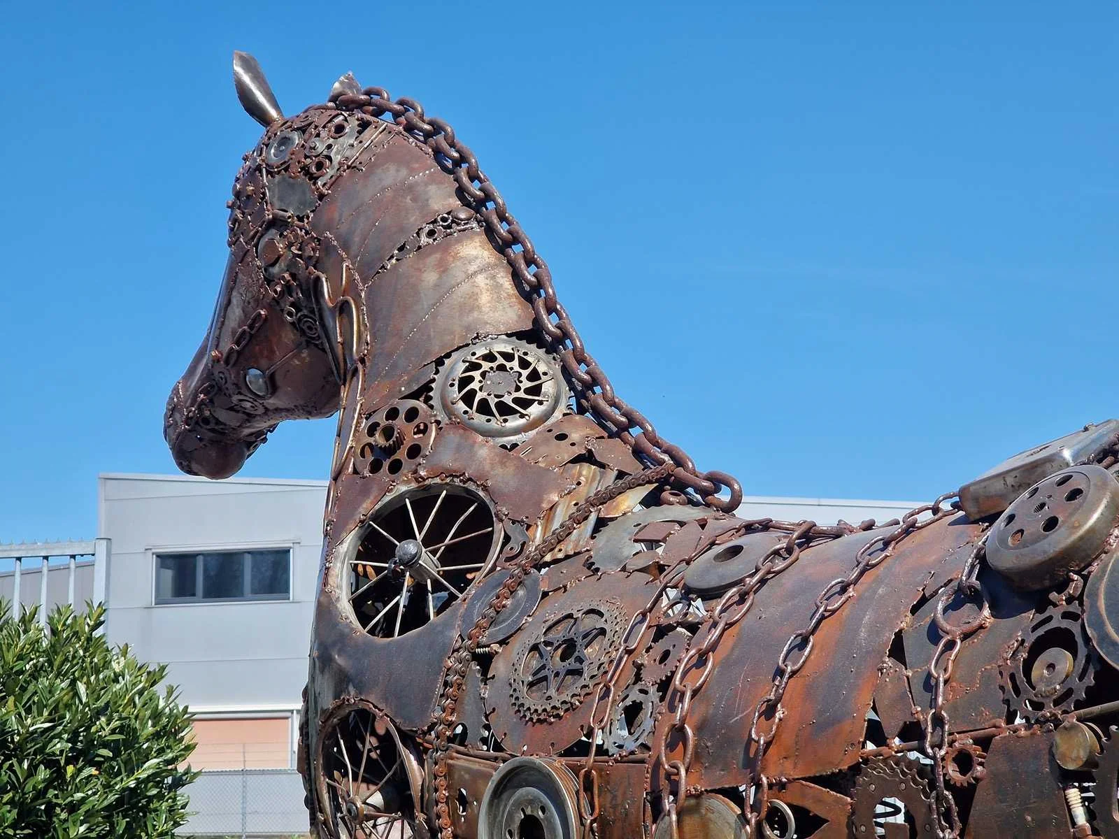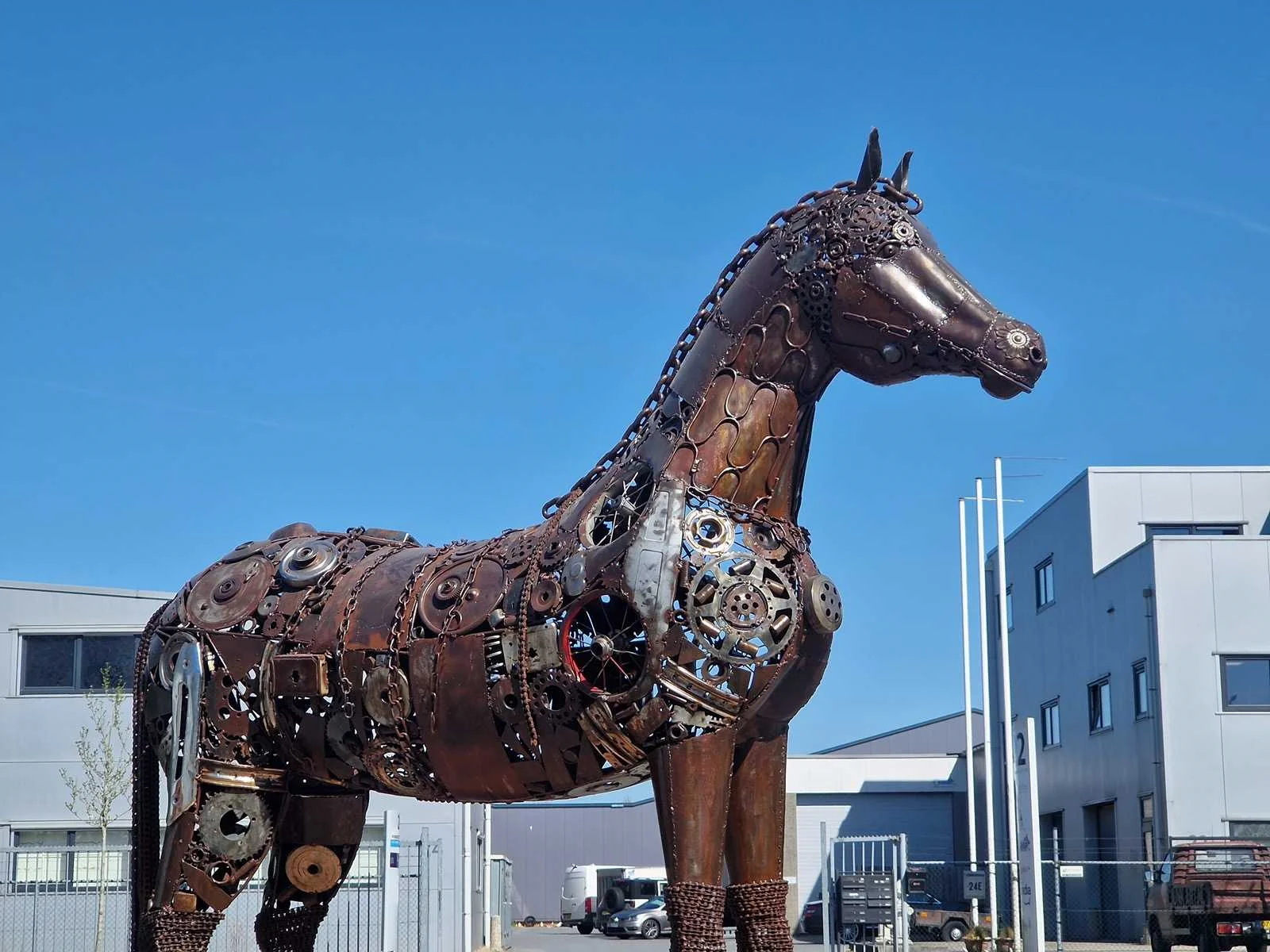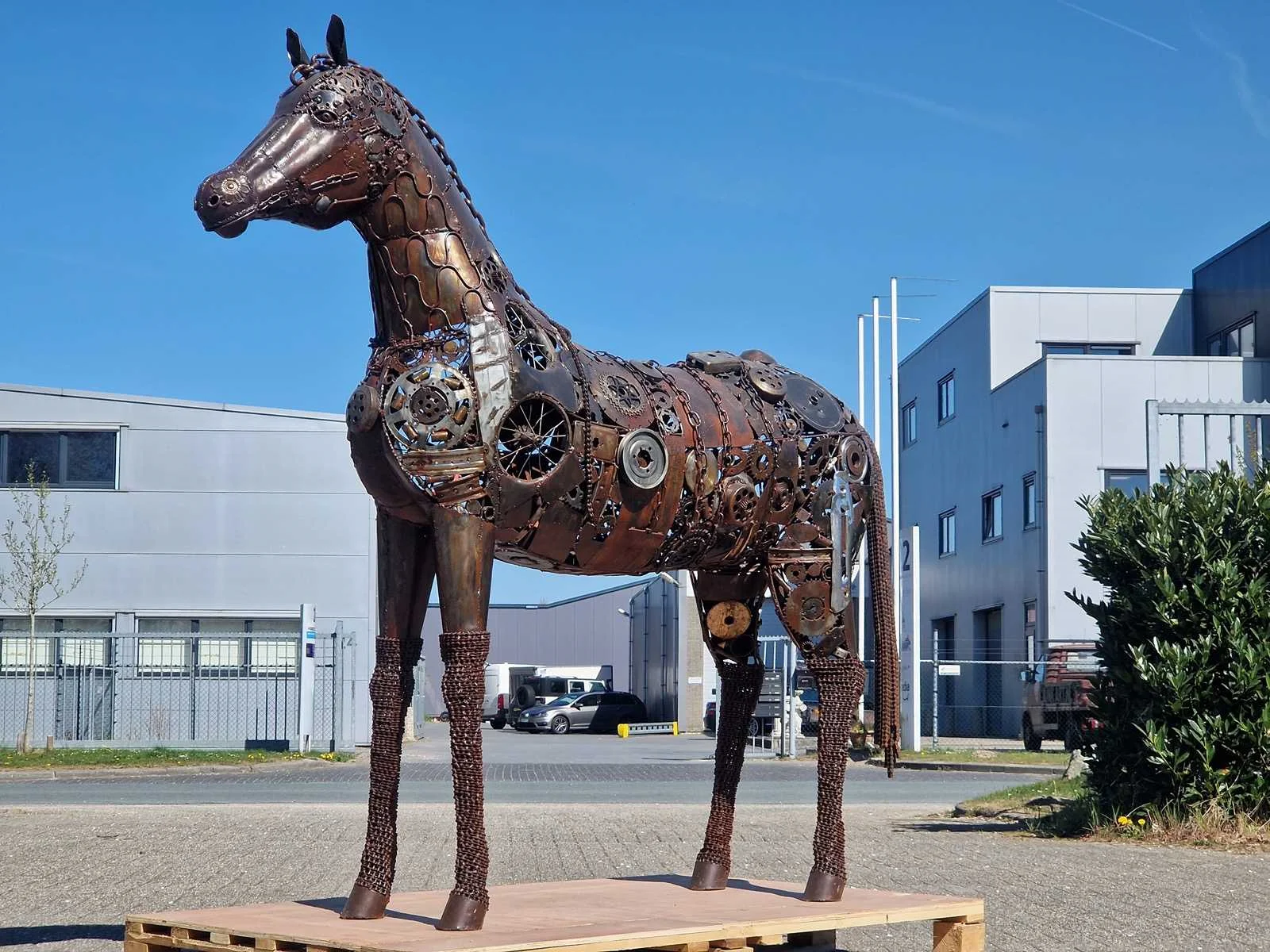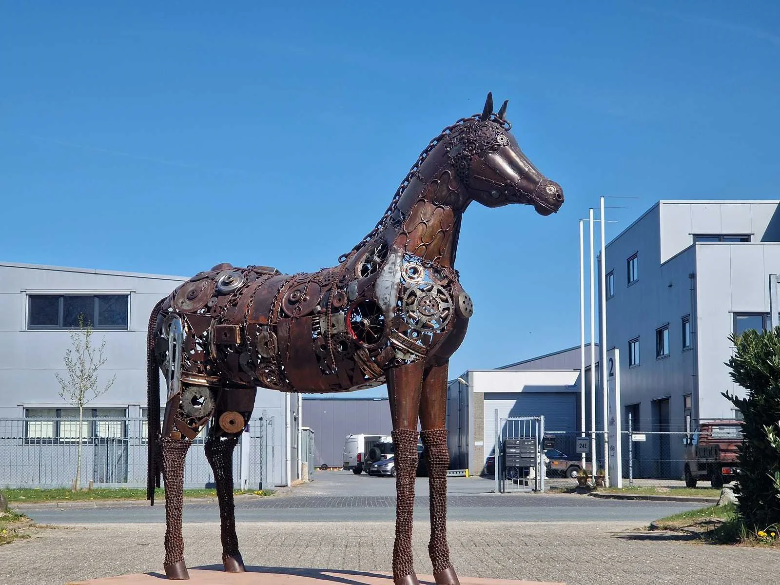 Handgemaakt tuinbeeld gemaakt van diverse metalen. Voorzien van een lichte anti-roest behandeling. Merk: Junk-art Lengte: 241cm Breedte: 49cm Hoogte: 219cm
