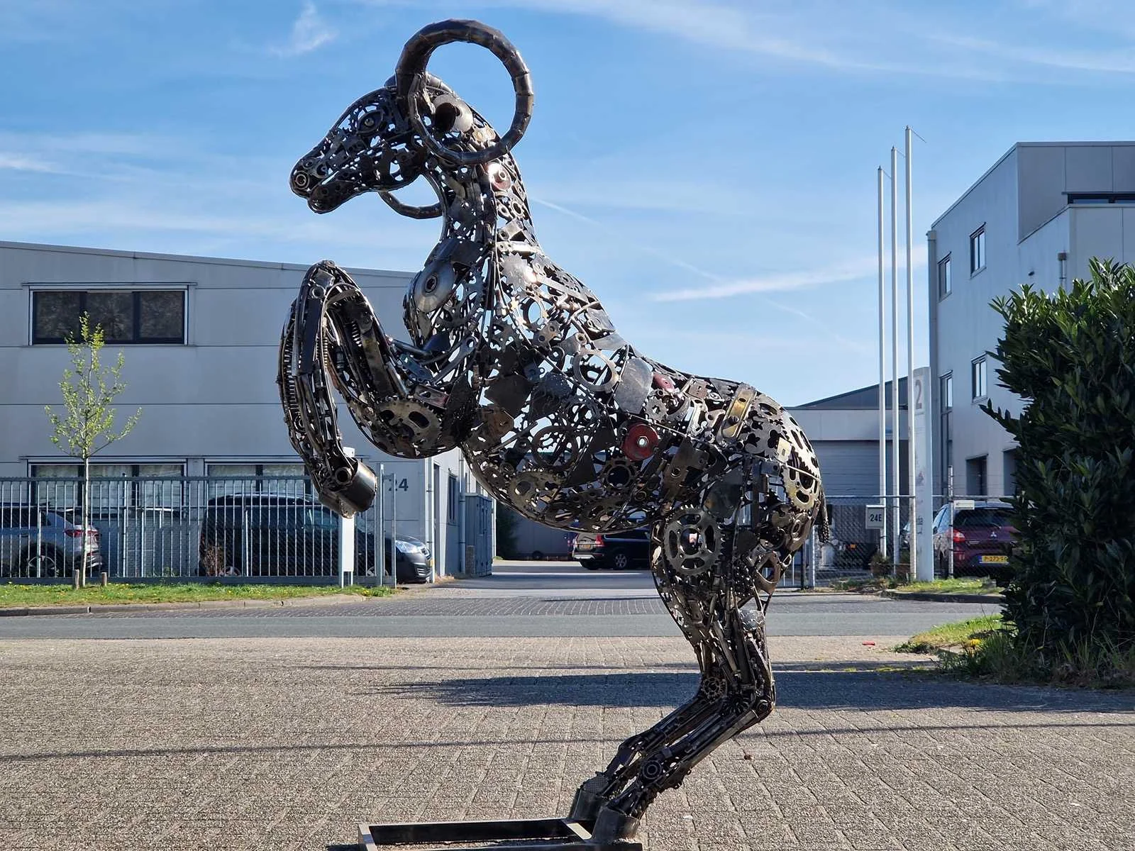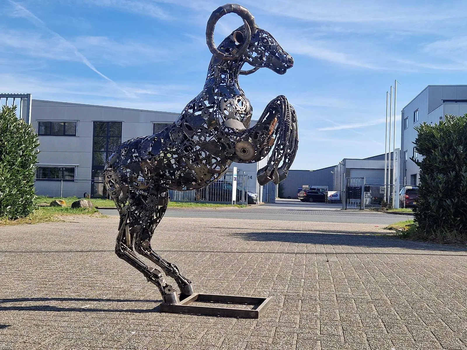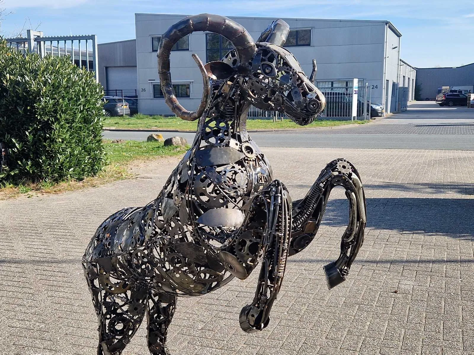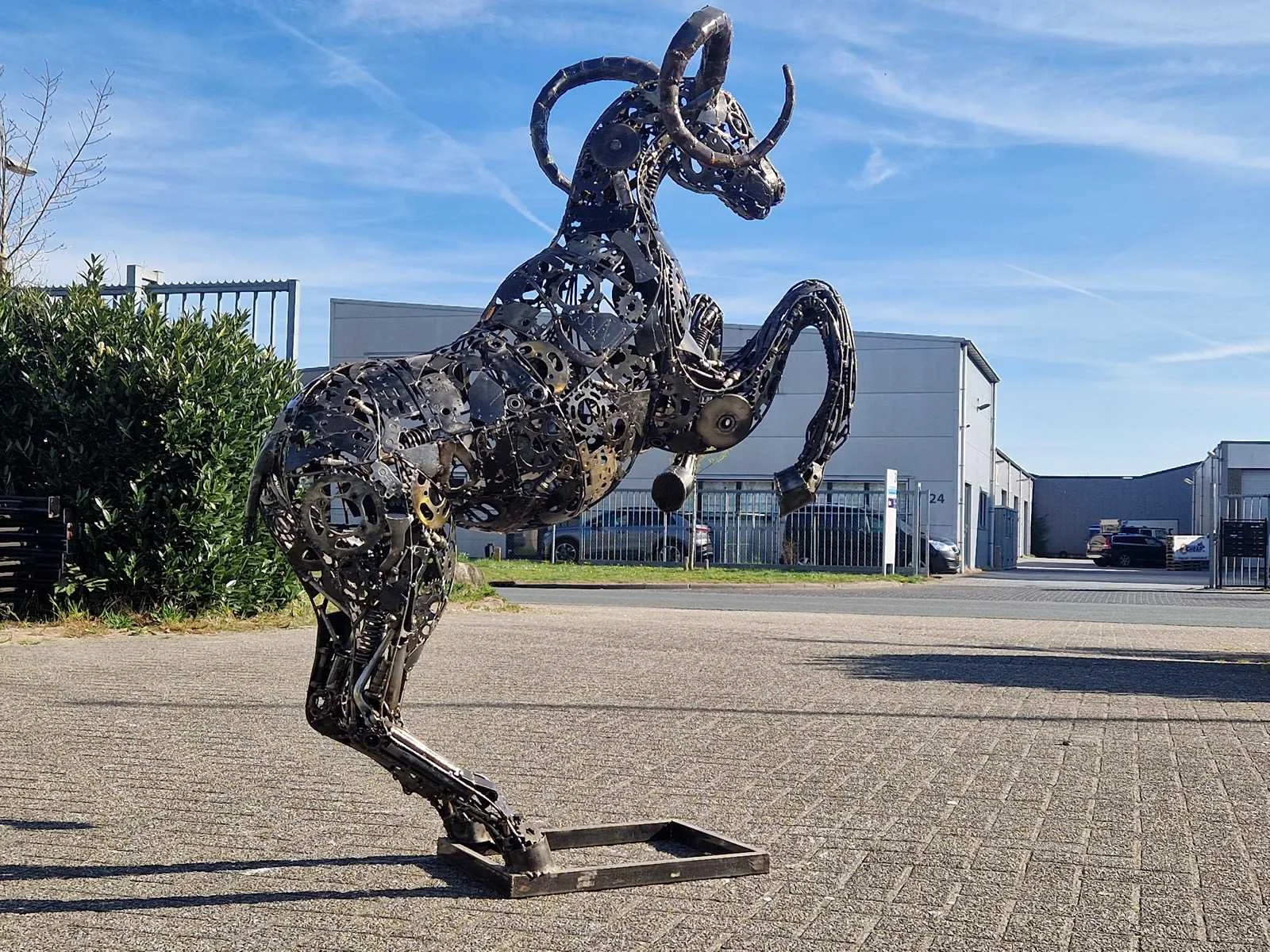 Handgemaakt tuinbeeld gemaakt van diverse metalen. Voorzien van een lichte anti-roest behandeling. Merk: junk-art Lengte: 122cm Breedte: 67cm Hoogte: 170cm