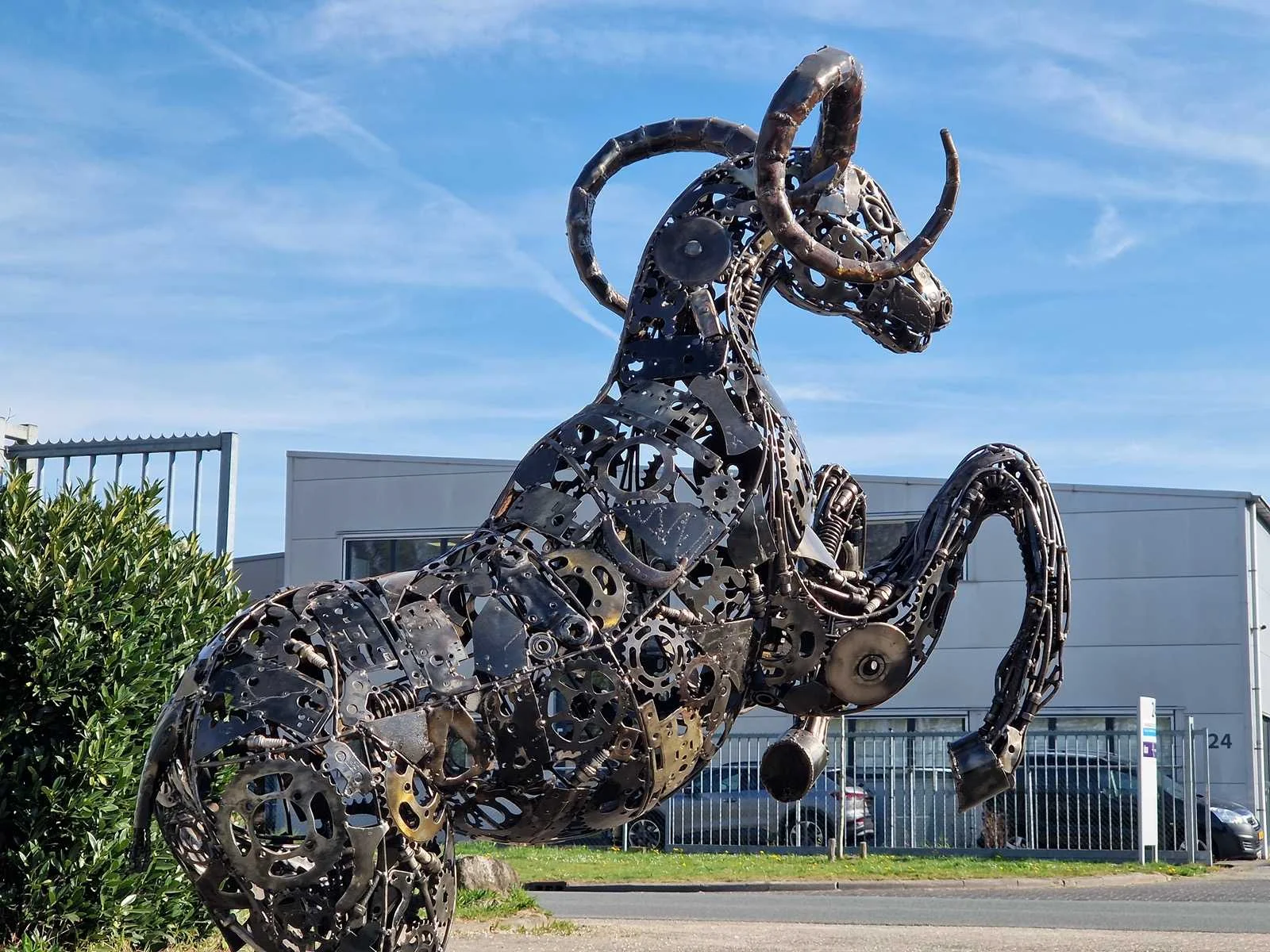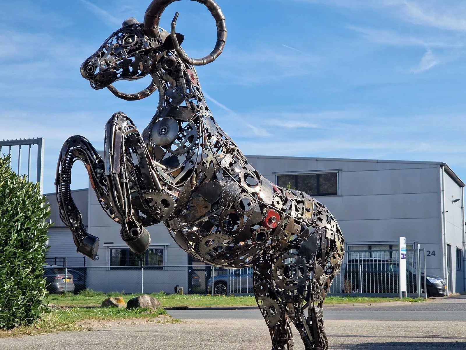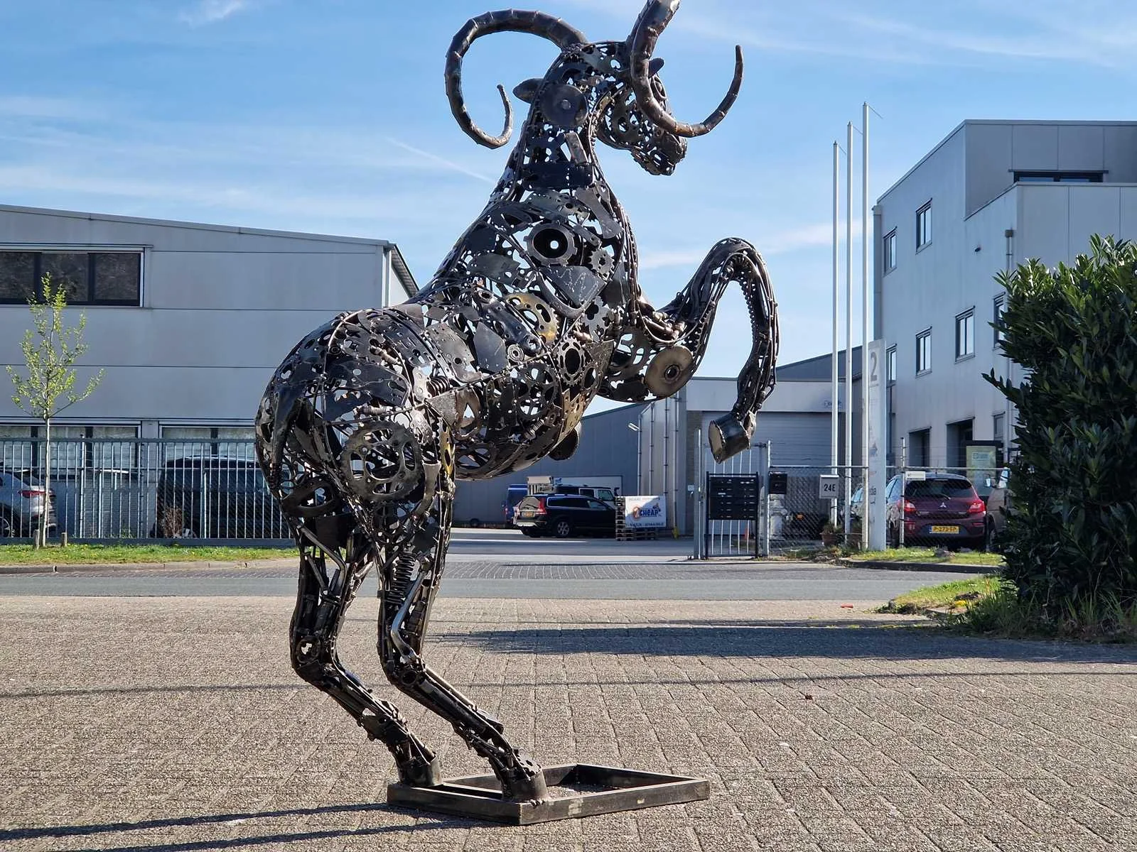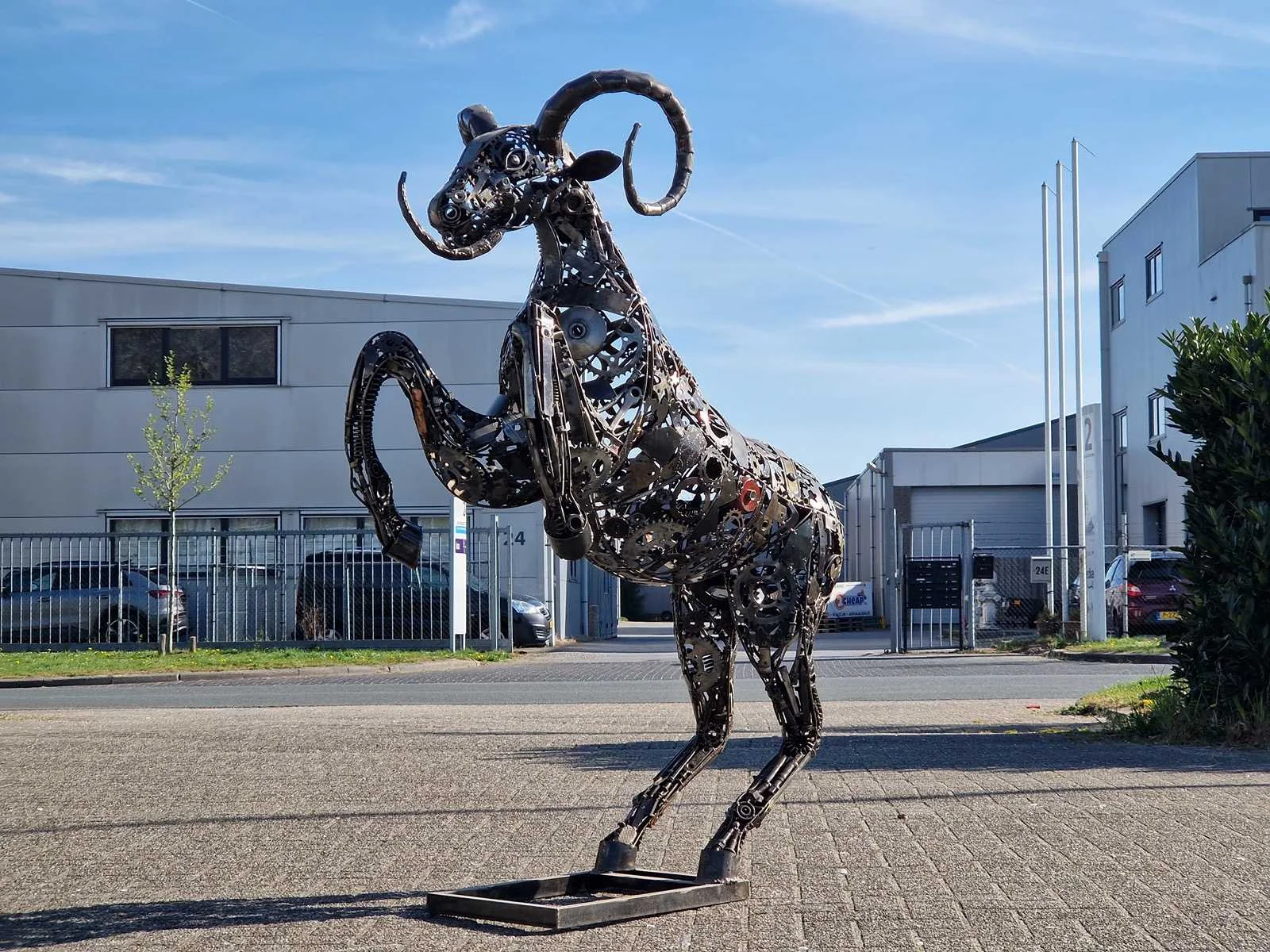 Handgemaakt tuinbeeld gemaakt van diverse metalen. Voorzien van een lichte anti-roest behandeling. Merk: junk-art Lengte: 122cm Breedte: 67cm Hoogte: 170cm