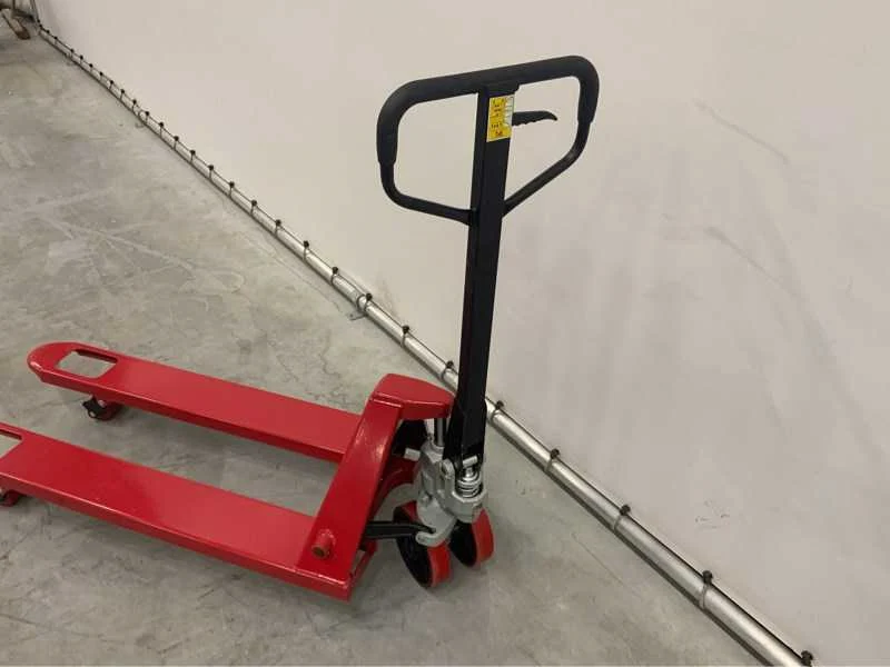 Ongebruikt in verpakking; met enkele voorwielen; 3595; Hefvermogen: 2500kg Hefhoogte: 200mm Lepellengte: 1150mm Totale afmeting L: 1500mm Totale afmeting Breedte: 540mm Totale afmeting Hoogte: 1250mm