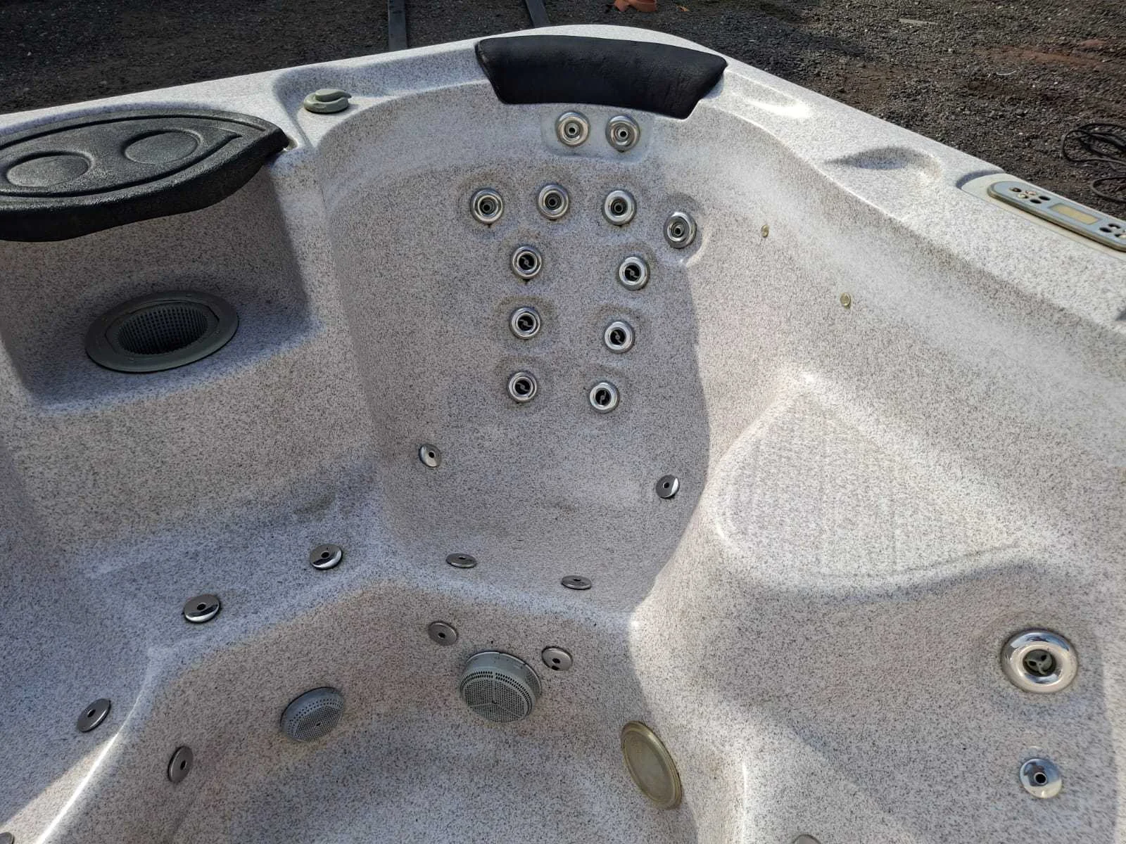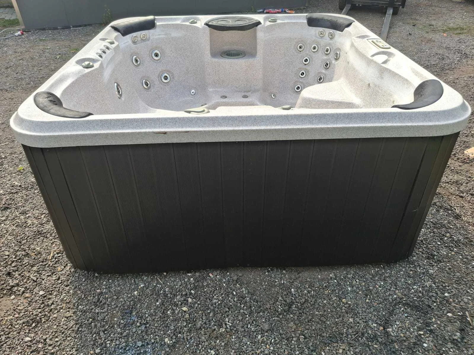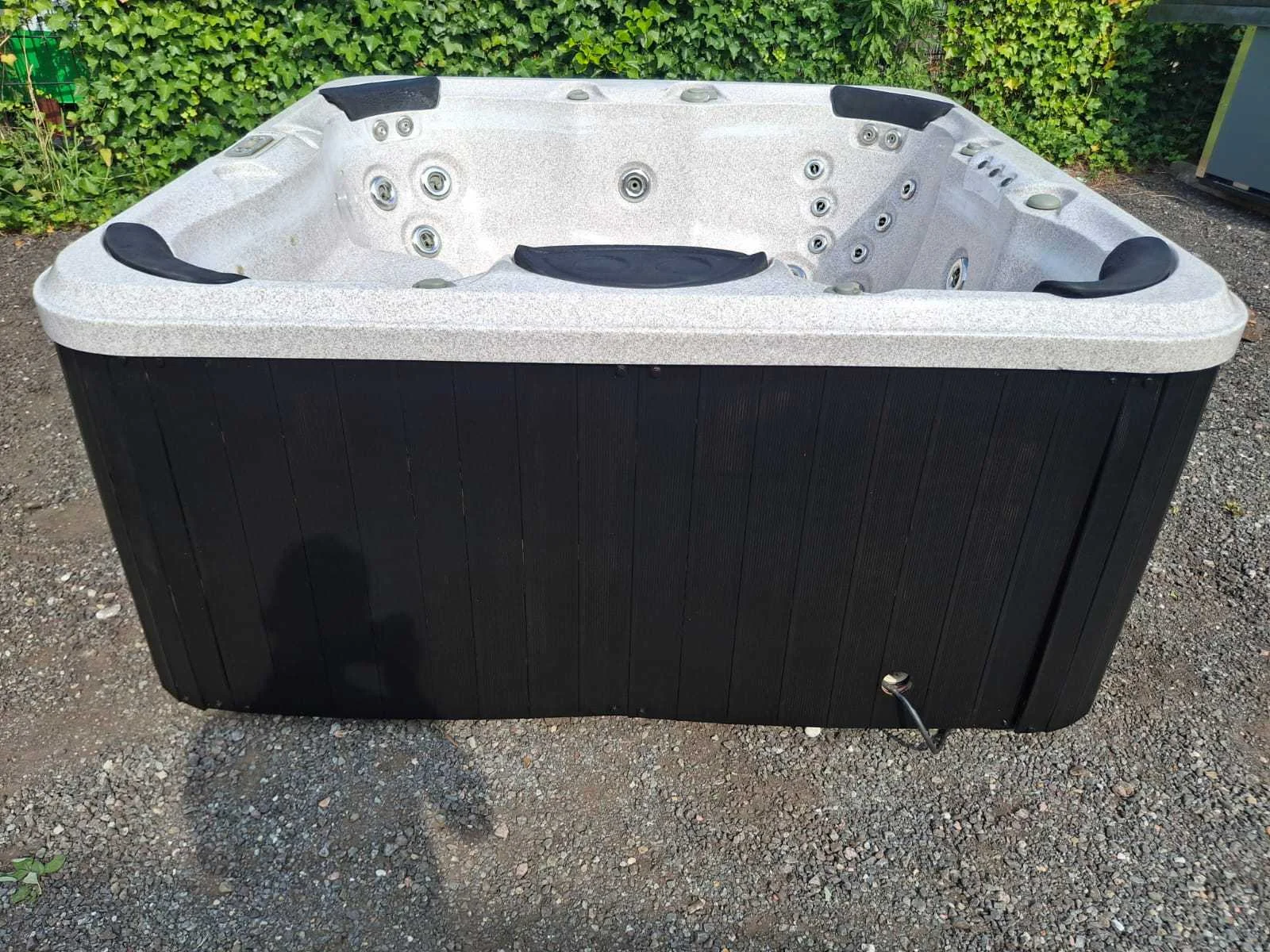 Voorzien van kunststof omkasting; automatisch filtersysteem; nek/schouder massage; RVS massage jets; waterval; Niet getest op functioneren (Marge, geen BTW) Model: 6 persoons Verlichting: Ja Jets: 35 Aantal personen: 6 Lengte: 210cm Breedte: 210cm Hoogte: 98cm