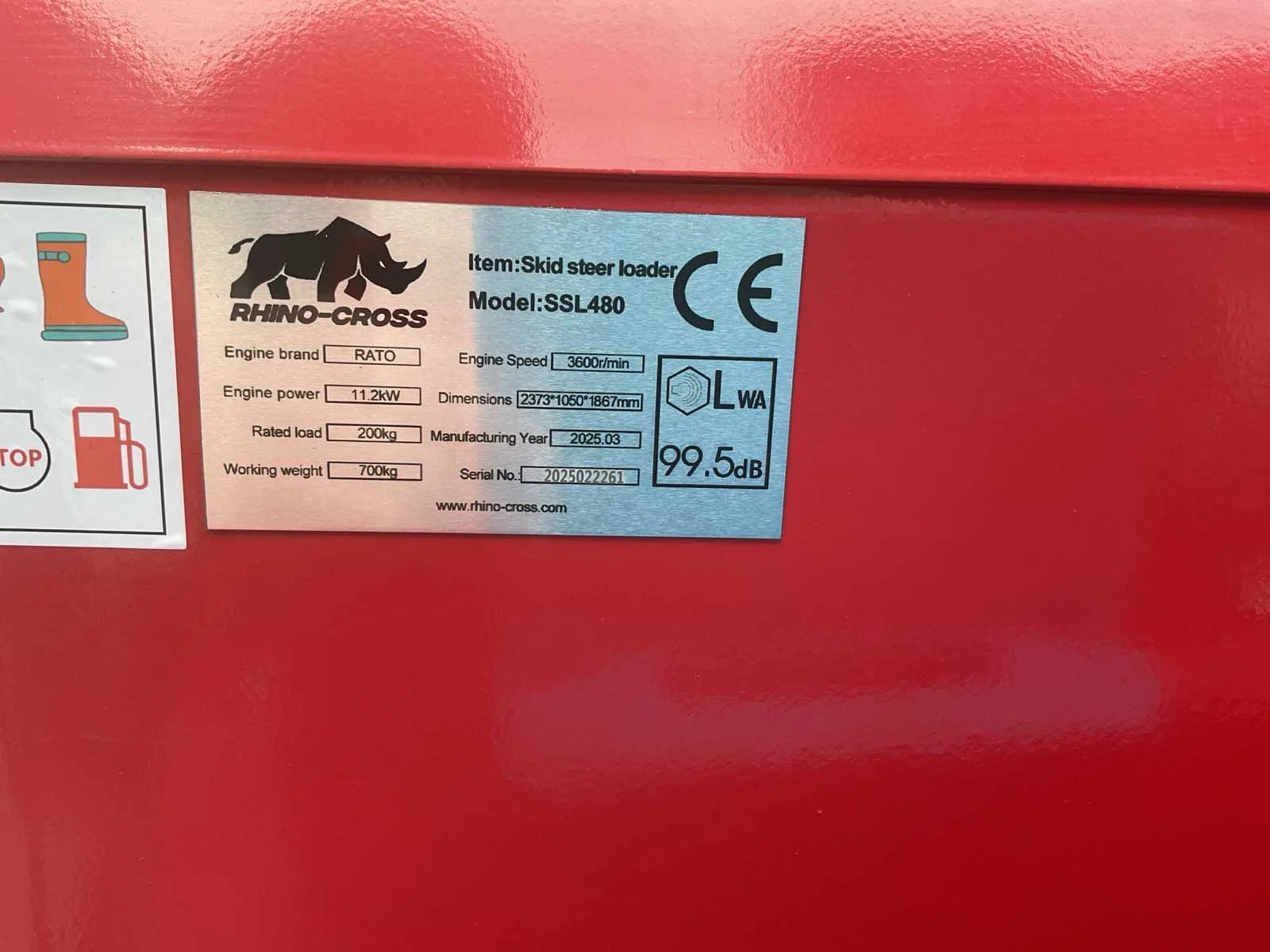 Voorzien van Elektrische start; Benzine Motor; 420CC Motor; 3600t/min; 200KG laadvermogen;12V aansluiting; Verlichting; 12" Wielen; Ongebruikt geleverd Merk: Rhino-Cross Type: SSL480 Bouwjaar: 2025 Merk motor: RATO Motorvermogen (kW): 11.2kW Brandstof: Benzine Bedrijfsgewicht: 700kg Graafbak afm. l: 500mm Graafbak afm. b: 1000mm Graafbak afm. h: 300mm Bandenmaat: 12" Eigen gewicht: 700kg Totale afmeting L: 2373mm Totale afmeting Breedte: 1050mm Totale afmeting Hoogte: 1897mm