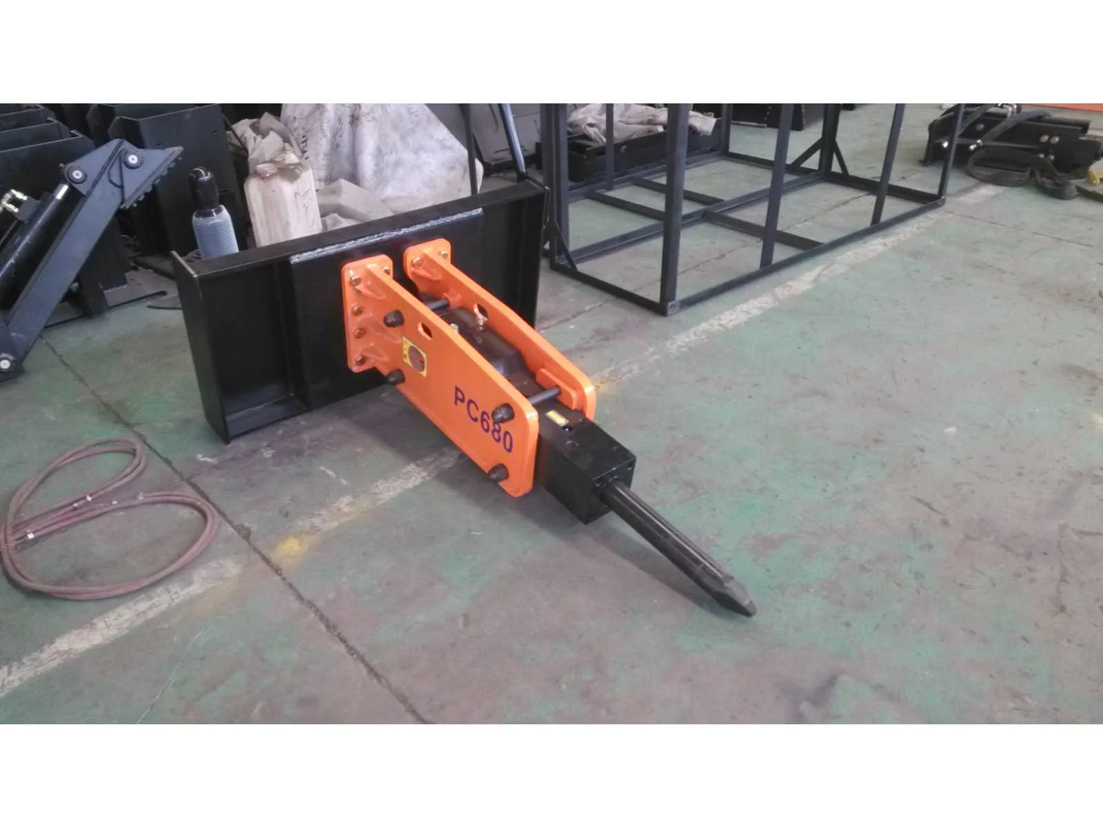 Voorzien van schranklader/“bobcat” opname-/aanbouwplaat; lengte 1719 mm; werkdruk 50-90 liter/min; werk kracht 120-170 kg/cm2; impact rate 400-800 bpm; beitel diameter 7,5 cm; 6-9 Ton; geleverd in stalen krat; ongebruikt Merk: Rhino-cross Type: Hydraulic Breaker Bouwjaar: 2025 Eigen gewicht: 375kg