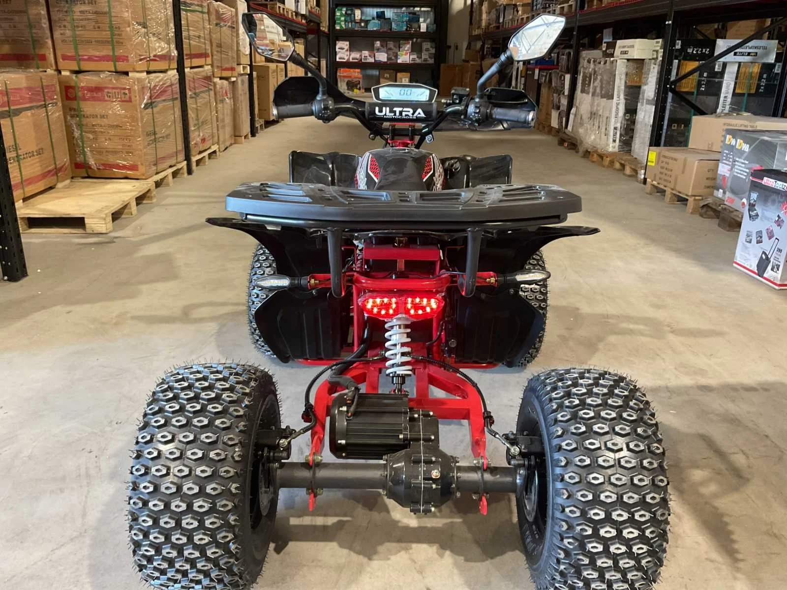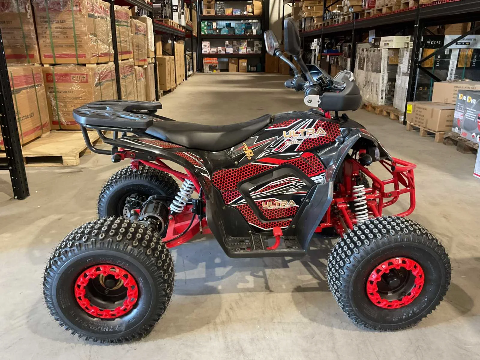 Voorzien van 60V 1500W elektrische motor; 3 verschillende snelheden; boost mode; led scherm; bandenmaat 8” inch; 2 sleutels; ongebruikt in krat (transport afmetingen 145x85x65 cm 120kg) Merk: Ultra Motocross Model: ATV005E Product type: ATX 1500 RD Gewicht: 110kg Aantal sleutels: 2 Transmissie: Automaat Bouwjaar: 2025 Brandstof: Elektrisch Kleur: Rood