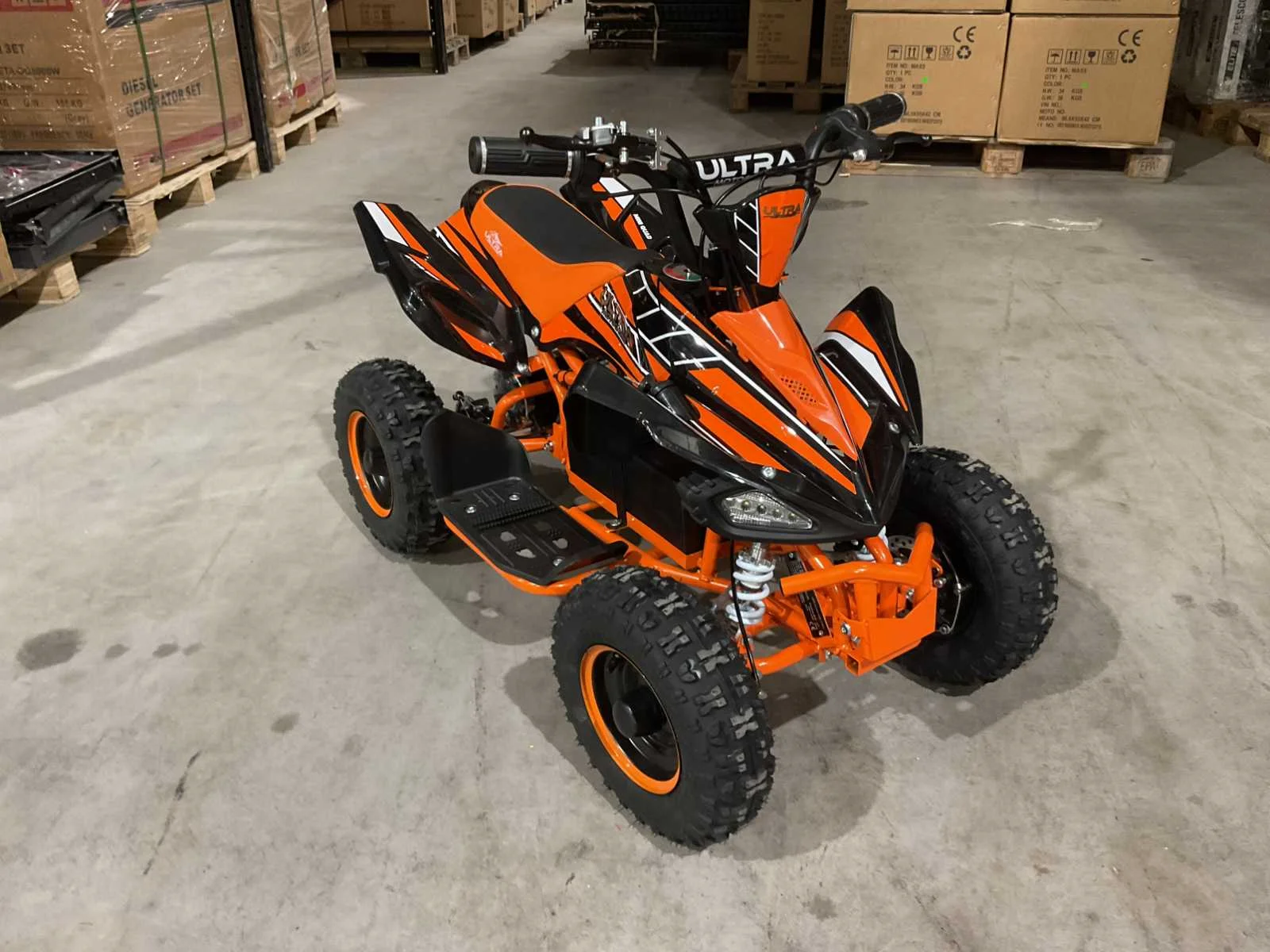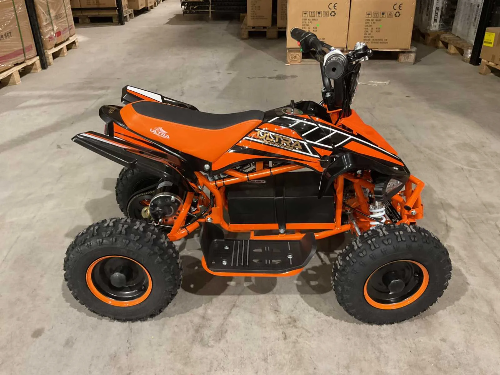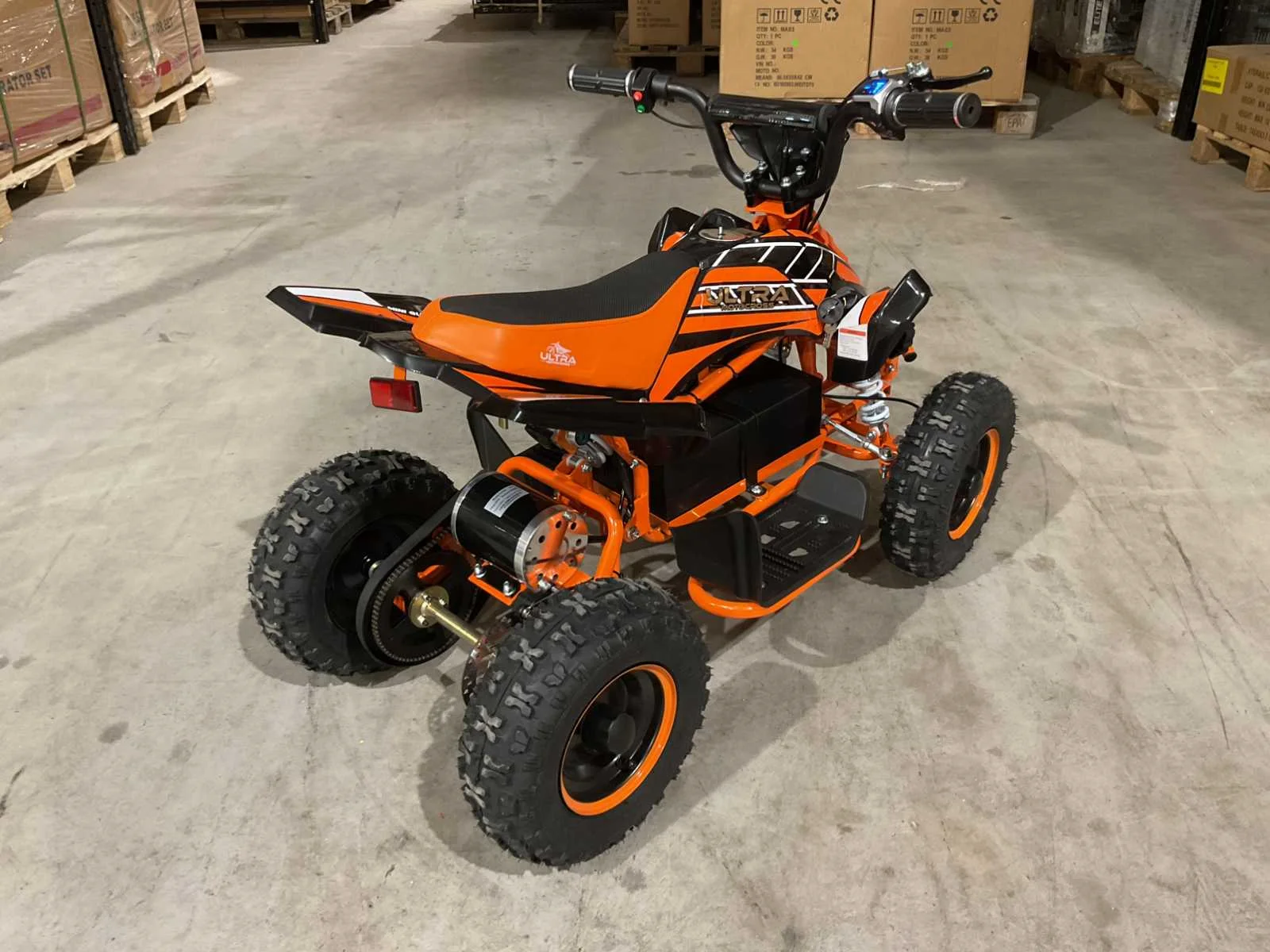 Voorzien van 1000W 36V elektrische motor; ouderen sleutel 3 verschillende snelheden; achterwielaandrijving; bandenmaat 6” inch; 2 sleutels; ongebruikt in doos (transport afmetingen 100x55x45 cm 48kg) Merk: Ultra Motocross Model: MA03E Product type: ATX 1000 OR Gewicht: 45kg Aantal sleutels: 2 Transmissie: Automaat Bouwjaar: 2025 Vermogen (kW): 1kW Brandstof: Elektrisch Kleur: Oranje Lengte: 100cm Breedte: 55cm Hoogte: 45cm