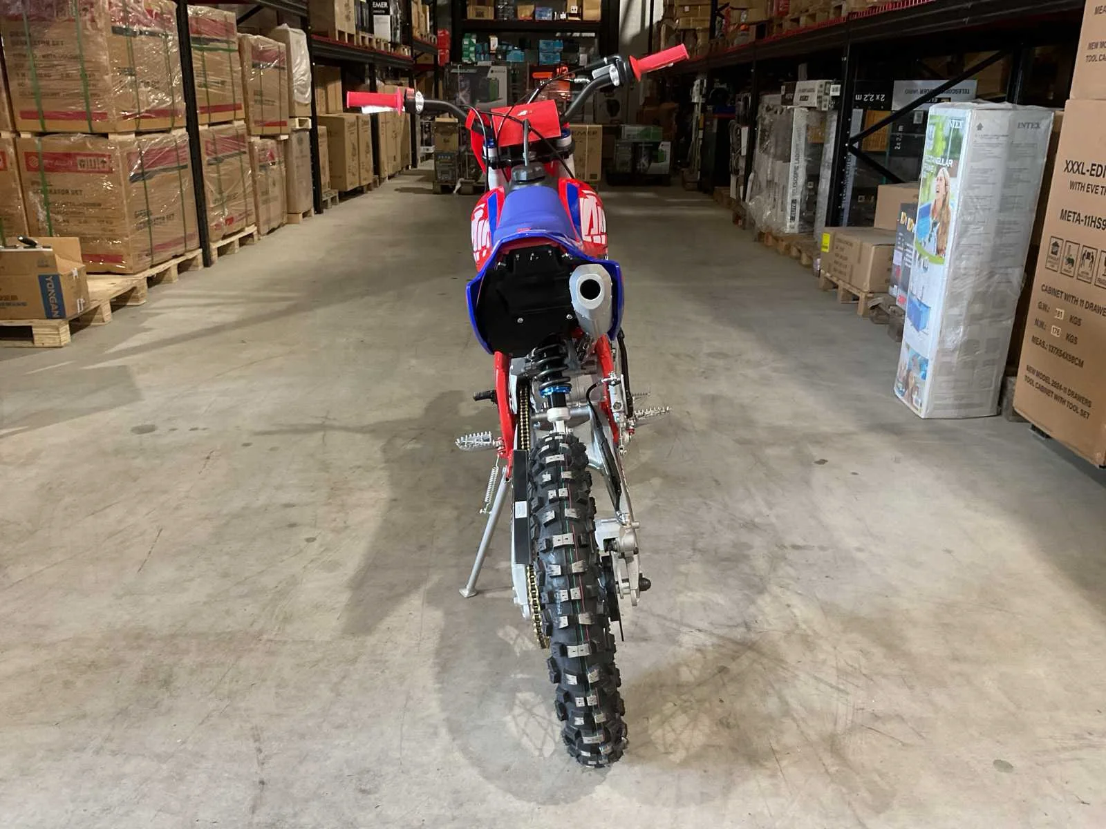 Voorzien van 125 cc motor; 4 takt; kick start; bandenmaat voor 19” inch achter 16” inch; hydraulische vering voor en achter; schijfremmen; ongebruikt in doos (transport afmetingen 150x40x75 cm) Merk: Ultra Motocross Type: Thunder 125 BL Brandstof: Benzine 4 Takt Cilinderinhoud: 125cc Gewicht: 91kg Kleur: Blauw Transmissie: Schakel Aantal sleutels: 2