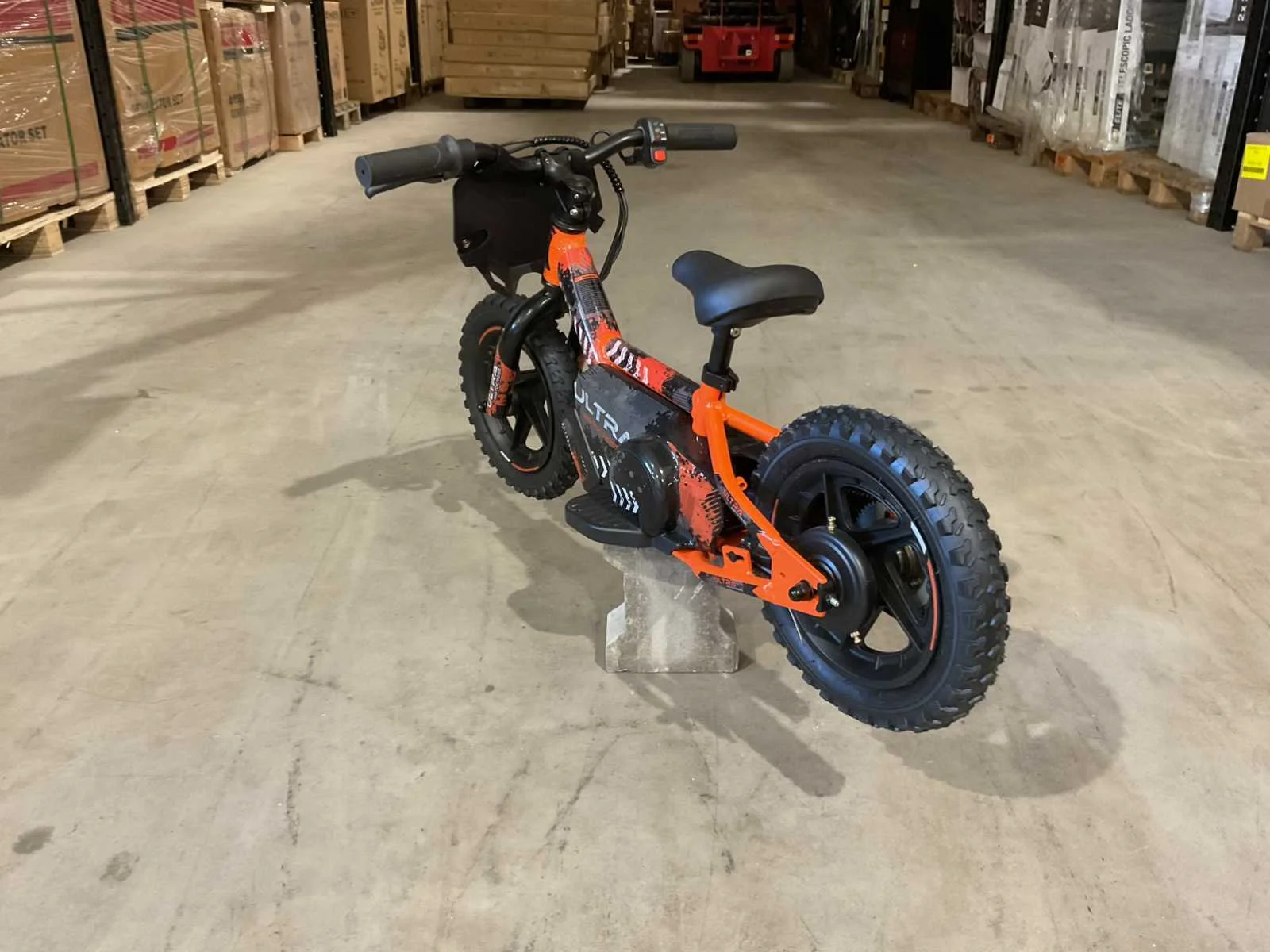 Voorzien van 200W elektrische motor; 2 verschillende snelheden; verstelbaar zadel; verwijderbare accu; bandenmaat 12” inch; ongebruikt in doos (transport afmetingen 90x25x45 cm) Merk: Ultra Motocross Product type: TRX200 OR Kleur: Oranje Gewicht: 10kg Lengte: 90cm Breedte: 25cm Hoogte: 45cm
