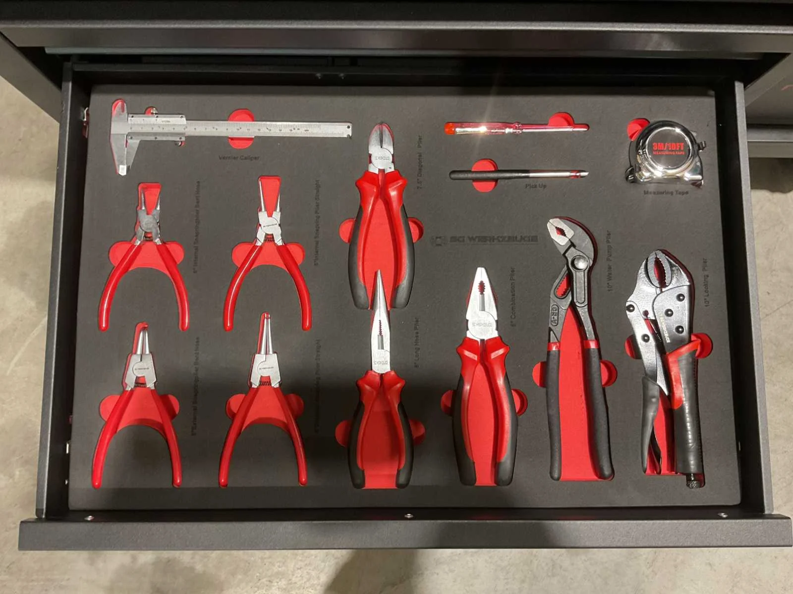 Voorzien van 14 lades waarvan 11 gevuld met gereedschap; professioneel chroom-vanadium gereedschap; heavy duty gereedschapswagen; houten werkblad; 4 wielen; stevig handvat; ongebruikt in doos (transport afmetingen 110x50x100 cm) Merk: SG Werkzeuge Type: SG32-24 Pro Max Bouwjaar: 2025 Aantal laden: 14 Met inhoud: true Eigen gewicht: 159kg Totale afmeting L: 1100mm Totale afmeting Breedte: 500mm Totale afmeting Hoogte: 1000mm