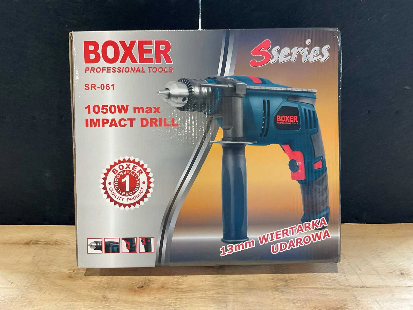 Eigengewicht 2,3kg verpakking afmeting 300x75x265mm Merk: Boxer Type: SR-061 Bouwjaar: 2025 Klopboormachine: true Capaciteit.: 13mm Vermogen: 1050W Aansluiting: 230V