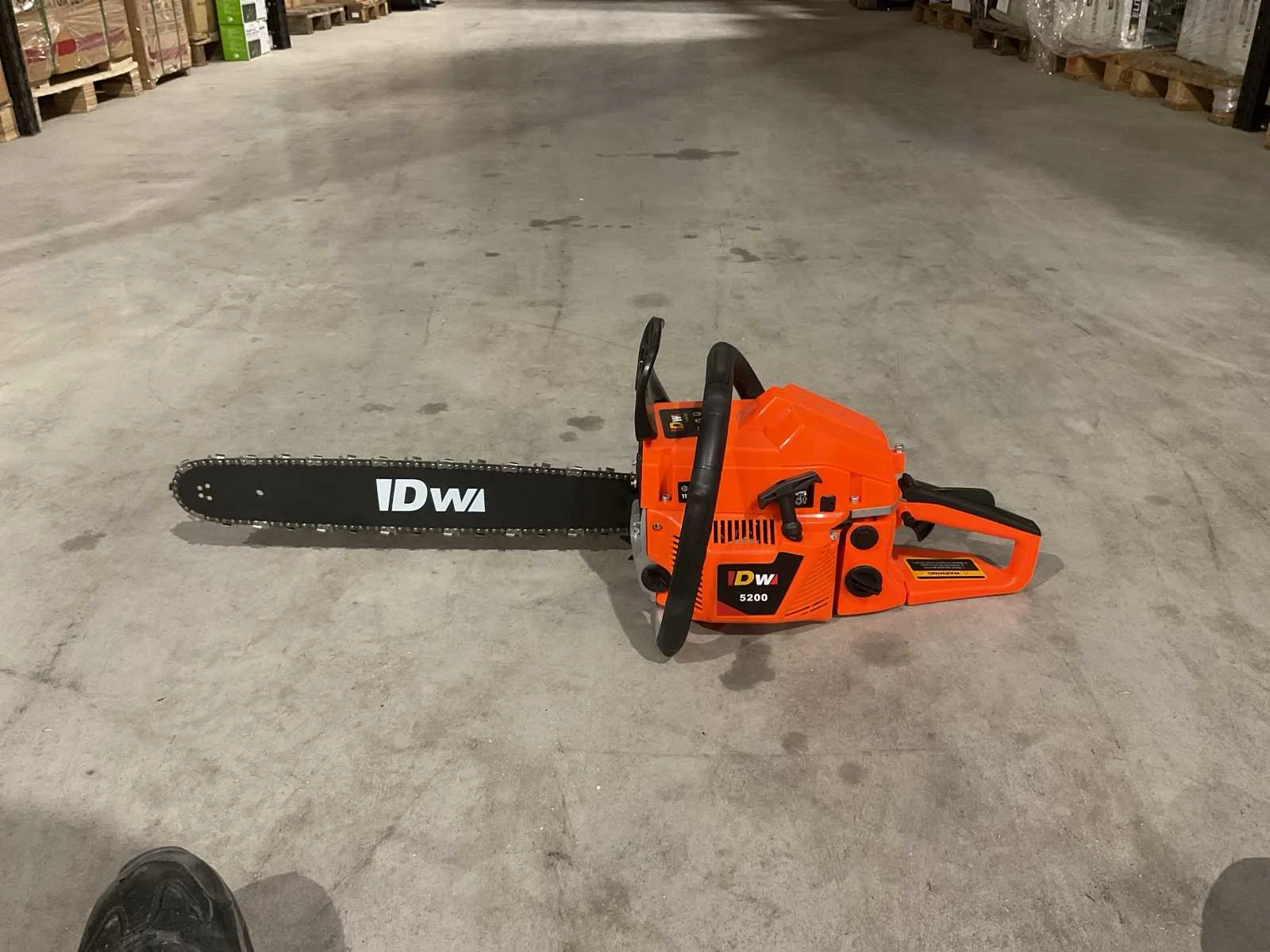 Voorzien van Stationair toerental: 3000rpm; Max. snijsnelheid: 10.000rpm; Inhoud brandstoftank: 580 ml; Krachtige motor: 52 cc; Zaaglengte: 52 cm; Brandstof: 1:35 (loodvrije benzine 35: twee-takt olie 1); Ketting dikte: 0.058 "/ 1,47 mm; Kettingsteek: 0,325 "/ 8,25 mm; Olietank: 250 ml; Trillingen: 8,5 m / s ², K = 1,5 m / s²; Geluidsdrukniveau: EN ISO 22868: 101 db (A) K = 3,0 dB (A); Geluidsniveau: EN ISO 22868: 2003: 114 db (A); beschermhoes; kettingpijlen; bougiesleutel; schroevendraaier; 2 Allen sleutels Merk: DW Type: DW-5200 Bouwjaar: 2025 Eigen gewicht: 6.5kg Totale afmeting L: 91mm Totale afmeting Breedte: 26.5mm Totale afmeting Hoogte: 28.5mm