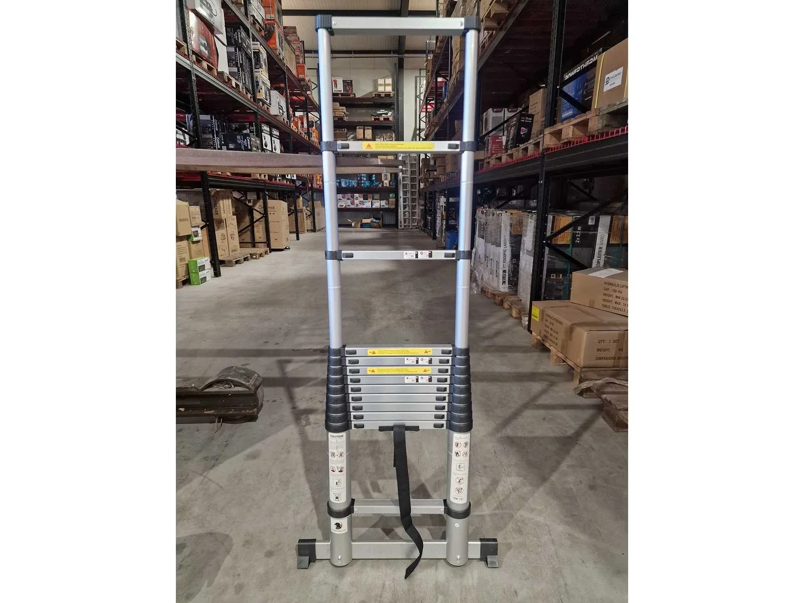 Voorzien van Werkhoogte: 3,8 meter; Lengte ingeklapt: 72,5 centimeter; Lengte uitgeklapt: 3,8 meter; Materiaal: aluminiumn; Maximale belastbaarheid: 150 kg; Ongebruikt in doos Merk: Nürnberg Type: Aluminium single side ladder 3,8 meter Bouwjaar: 2025 Aantal treden: 13 Aantal sporten: 13 Aluminium: true Telescoopladder: true Eigen gewicht: 11.6kg Totale afmeting L: 475mm Totale afmeting Breedte: 90mm Totale afmeting Hoogte: 880mm