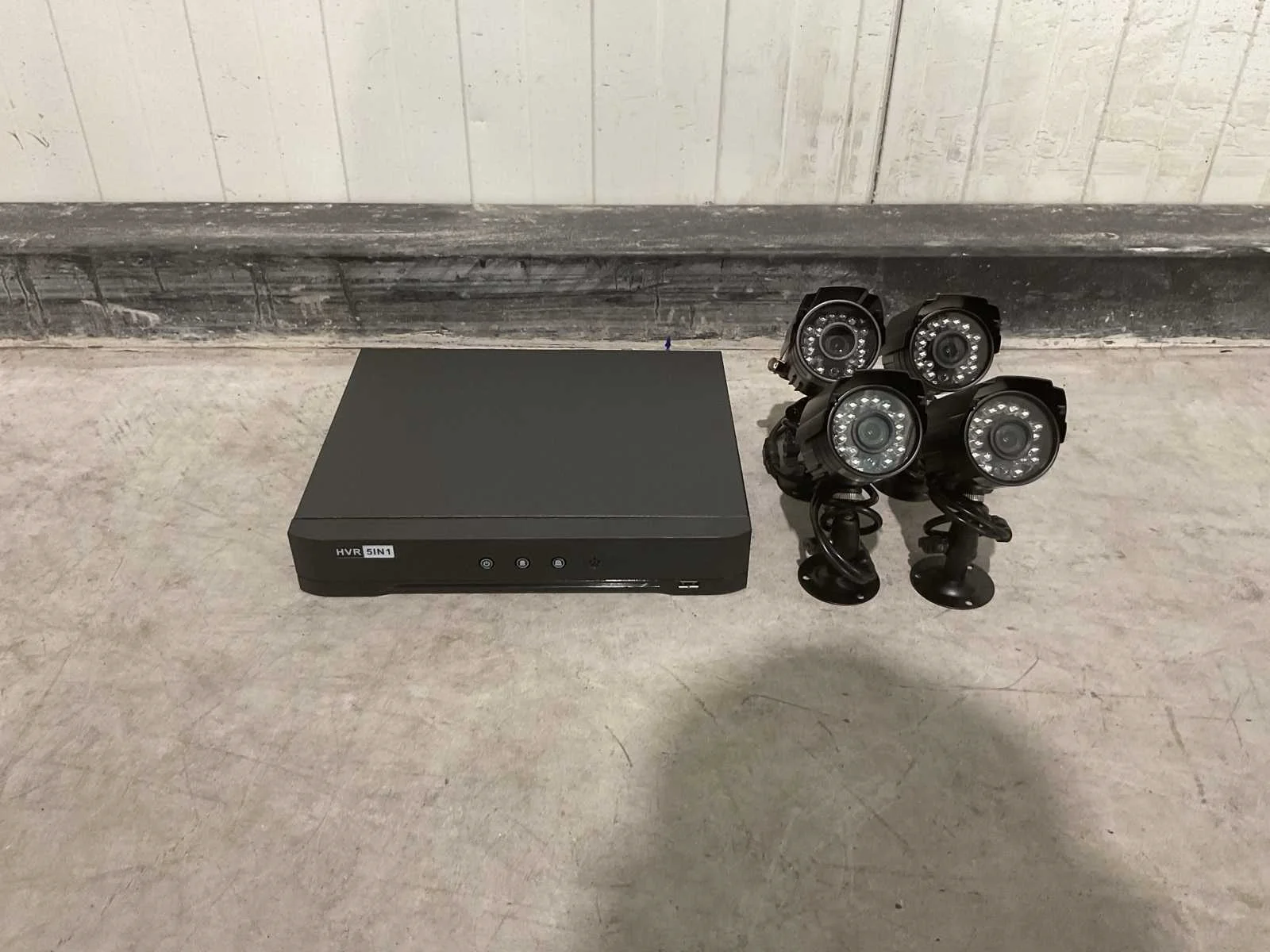 Voorzien van 4 camera’s; bewegingssensor; DVR; Resolutie VGA 1280X1024; 4 kabels 10mtr kabel; 2 x power adapter; 1 x muis; 2 x usb poorten; 1 x SATA harde schijf slot; netwerk aansluiting rj45; DC12V; video input: 4CH BNC; Video-output: 1x VGA, 1x CVBS, 1x HDMI; Audio input: 2 kanaal RCA; Audio output: 1ch RCA; 3.6 mm lens; kijkhoek: 60 graden; Nachtzicht: LED IR, 15M range; ongebruikt in doos Merk: CCTV Model: Security Recording system Product type: With internet & 5G phone viewing Kleur: Zwart Wifi: true Gewicht: 3kg Lengte: 34cm Breedte: 18cm Hoogte: 27cm