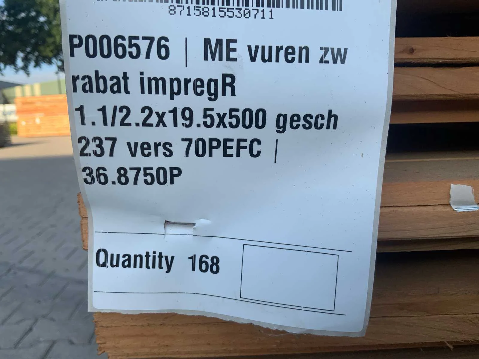 5000x195x11/22mm; ME Vuren zweeds rabat; geïmpregneerd; geschaafd; 70PEFC; ongebruikt; Afmeting l: 5000mm Afmeting b: 195mm