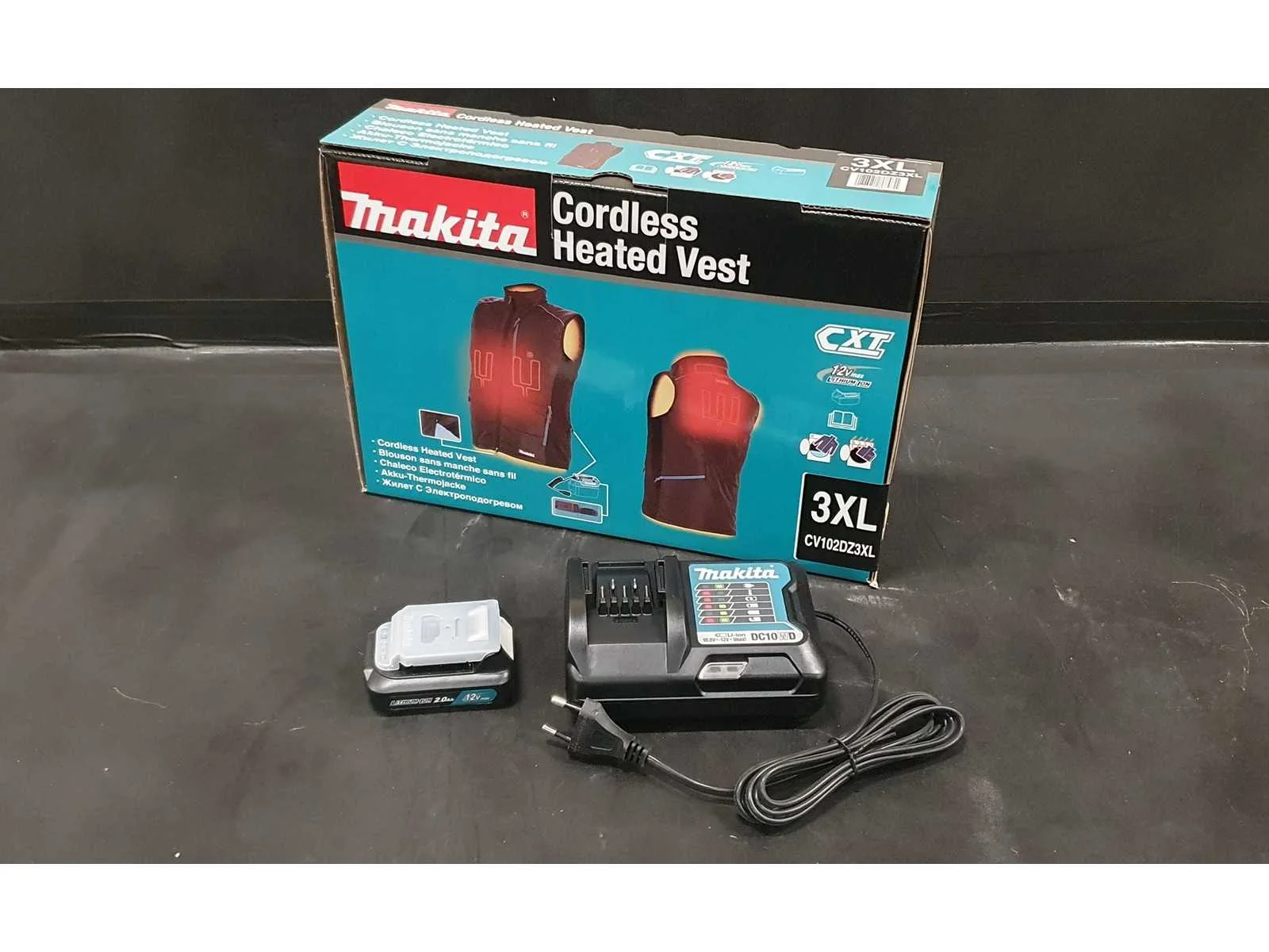 Inclusief 12V Li-ion accu; BL1021 + DC10WD Specificaties: USB poort (opladen mobiel apparaat): 1 Drogen in de droger: Ja Kleur: Zwart Warmte instellingen: Hoog/middel/laag Materiaal buitenkant jack: Polyester (85%) / Spandex (15%) Gewicht met lage CXT accu: 0,8 kg Werktijd laag (BL1020/21B): 7 uur Werktijd laag (BL1040/41B): 14 uur Werktijd middel (BL1020/21B): 3 : 45 uur Werktijd middel (BL1040/41B): 7 : 30 uur Werktijd hoog (BL1020/21B): 2 uur Werktijd hoog (BL1040/41B): 4 uur Gewicht met hoge CXT accu: 0,96 kg Wasvoorschrift: 30 °C Werktijd hoog (BL1411G): 4 uur Materiaal binnenkant jack: Polyester (100%) Volt (spanning): 10,8 V Merk: Makita Model: CV102DZ3XL