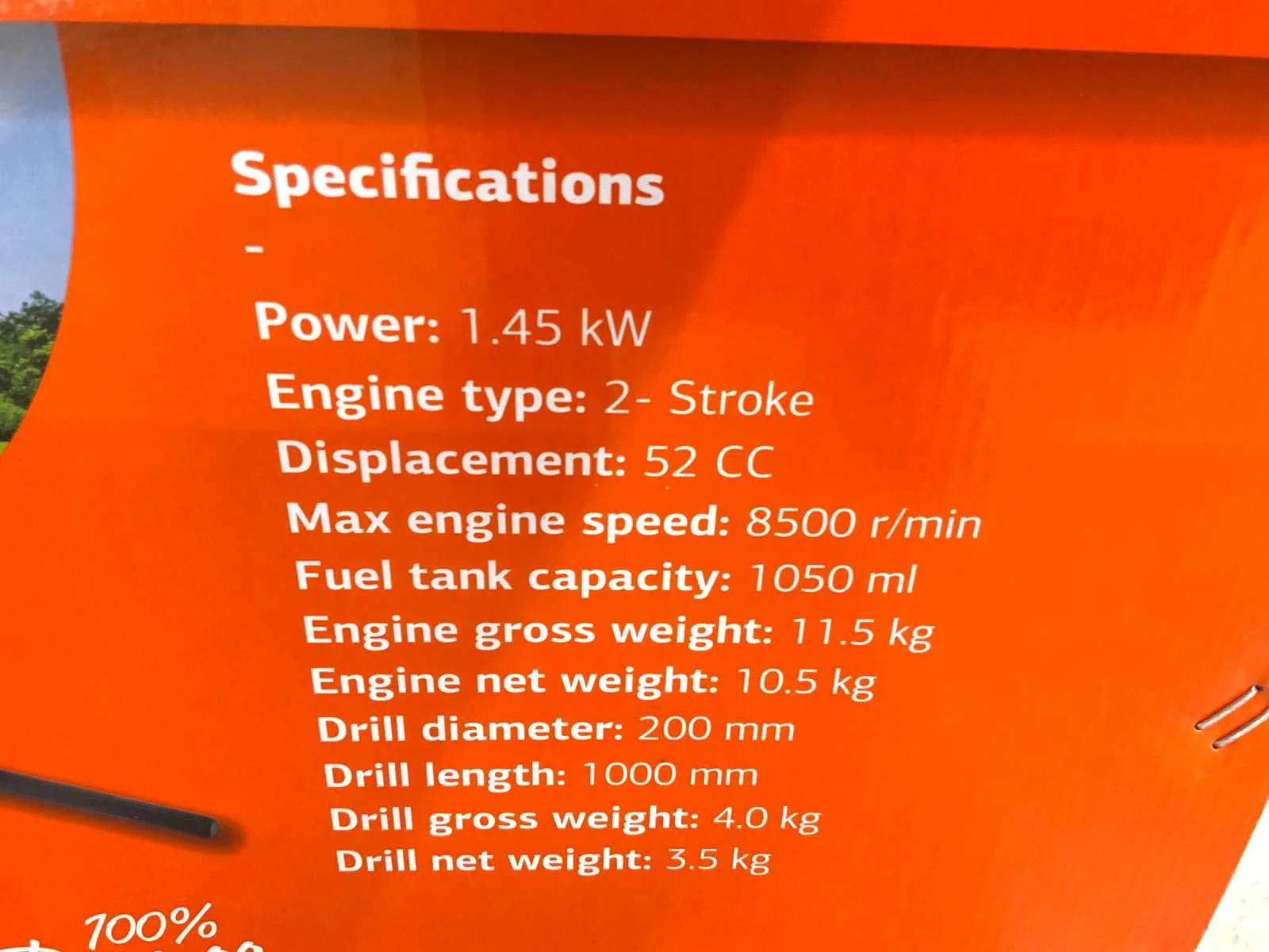 Boorlengte 1000mm; boor diameter 200mm; tankcapaciteit 1050ml; engine speed 8500rpm; 1.45KW; 2 takt; 52cc; 6170 Merk: Daewoo Product type: DAEAXB520 Kleur: grijs
