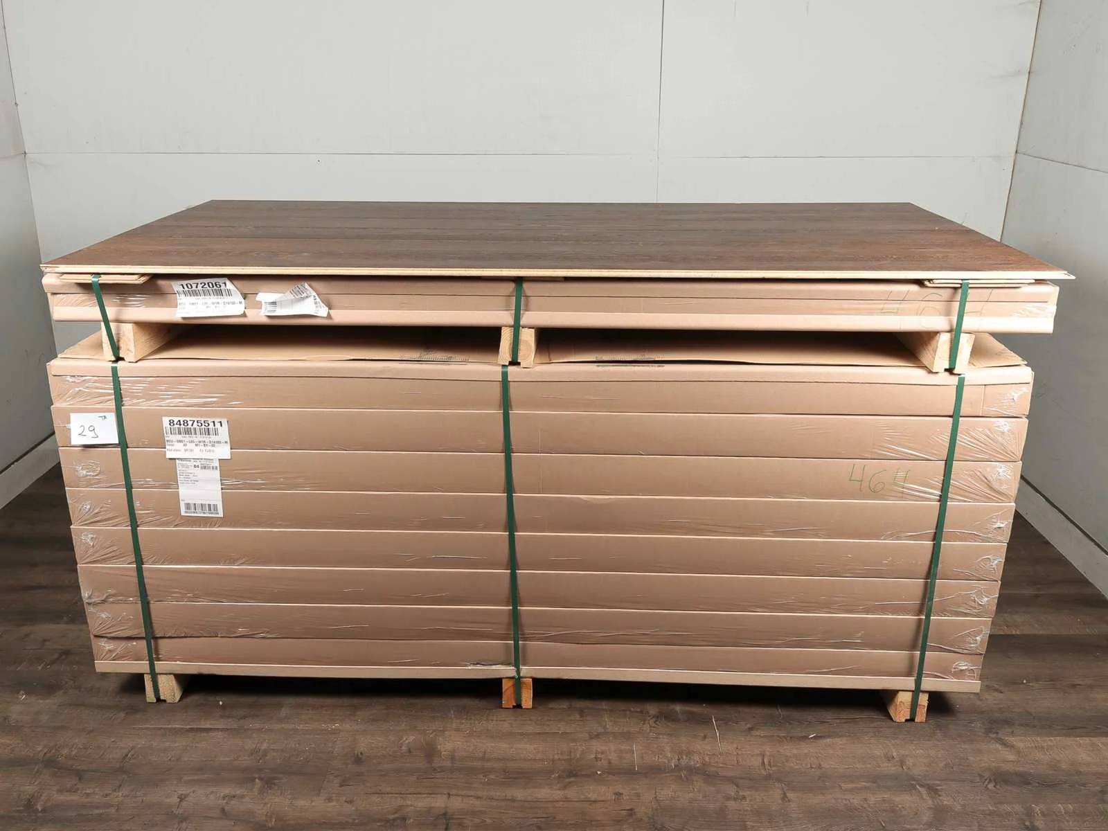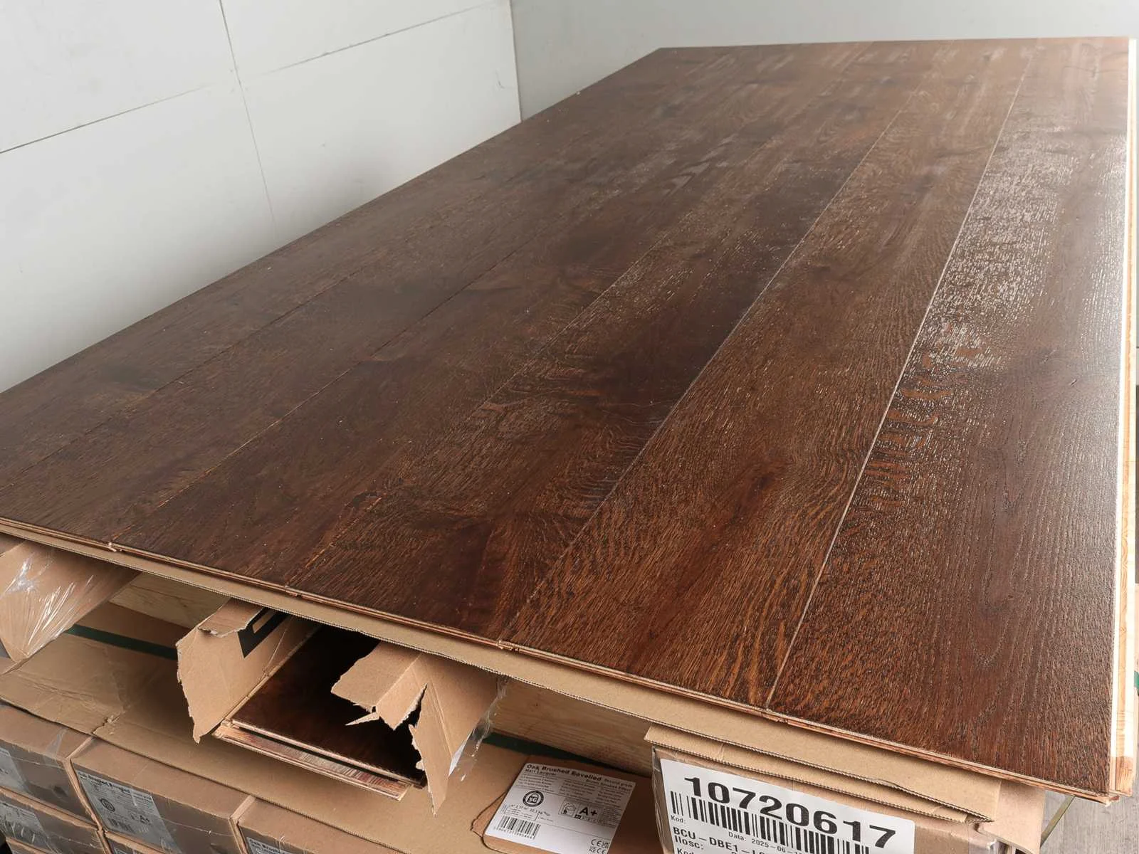 Gemakkelijk te leggen wegens 5G clicksysteem, geschikt voor alle soorten vloer en koelverwarmingen, kwaliteits parketvloer, vloer is van hoogwaardig Europees eiken hout, kant en klaar behandeld, dikte 14 mm, toplaag 3 mm, 42 pakken a 2,77 m2 Bezorgtermijn 14 dagen Merk: Ambiance Product type: Parket Oppervlakte: 116m² Geschikt voor vloerverwarming: Ja V-groef: Ja Afwerking: Mat gelakt, geborsteld, met v-groef Aantal m² per verpakking: 2.77m² Kleur: Brown smokef effect 464 Gewicht: 965kg Lengte: 2200mm Breedte: 180mm Materiaal: Eiken multiplank