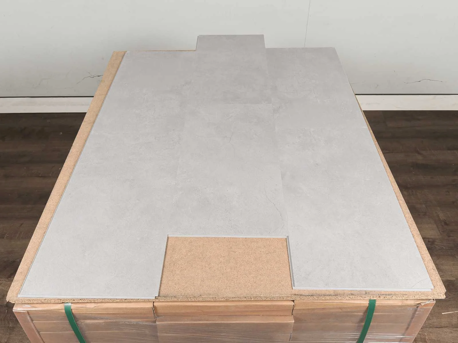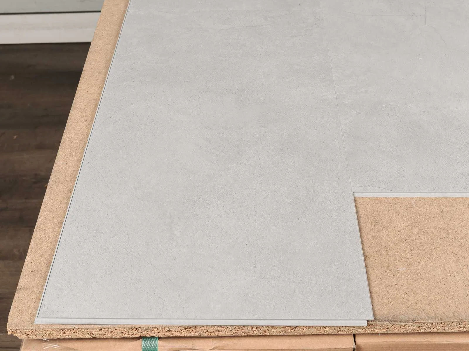 PVC click vloer, tegel formaat, water bestendig, vorstbestendig, ideaal voor vloerverwarming, kras en slijtvast, anti slip, 13 pakken a 2,05 m2 Bezorgtermijn 14 dagen Merk: Airial flooring Product type: PVC Oppervlakte: 26m² Geschikt voor vloerverwarming: Ja V-groef: Nee Afwerking: Voelbaar structuur, anti slip Aantal m² per verpakking: 2.05m² Kleur: Concrete light 801 Gewicht: 220kg Lengte: 610mm Breedte: 305mm Materiaal: PVC