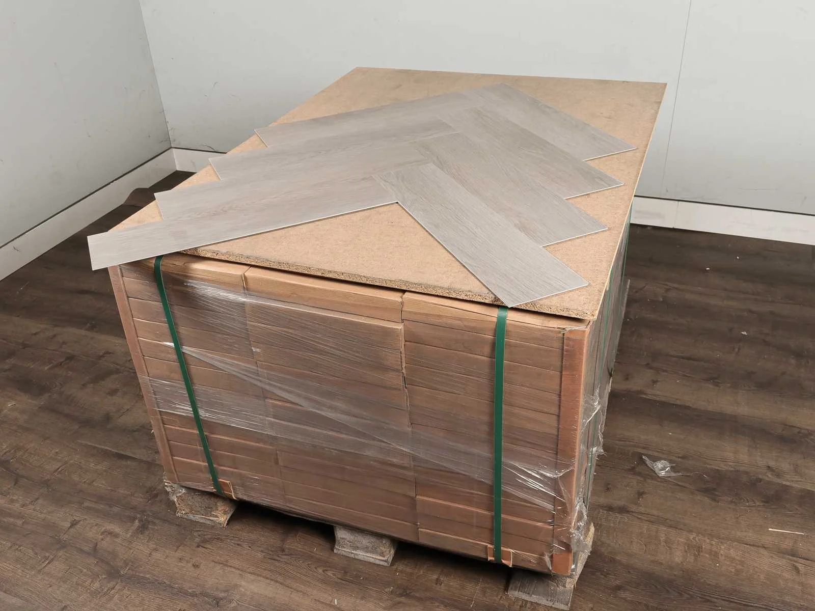 PVC click vloer, visgraat, dikte 5 mm, voorzien van XPS onderlaag, spat water bestendig, voorzien van clicksysteem, vorstbestendig, ideaal voor vloerverwarming, kras en slijtvast, anti slip, gemakkelijk schoon te maken, 17 pakken a 1,464 m2 Bezorgtermijn 14 dagen Merk: Airial flooring Product type: PVC Oppervlakte: 24m² Geschikt voor vloerverwarming: Ja V-groef: Ja Afwerking: embossed, voelbaar structuur, anti slip, met v-groef Aantal m² per verpakking: 1.464m² Kleur: Lightgrey oak 106 Gewicht: 170kg Lengte: 610mm Breedte: 150mm Materiaal: PVC/SPC