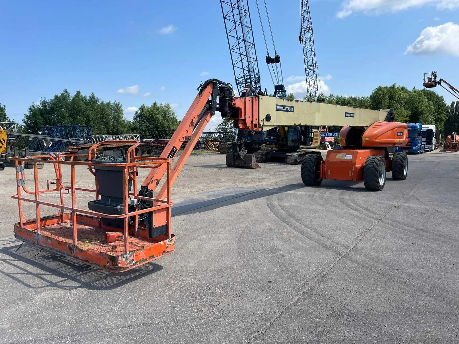 4 WD Merk: JLG Type: 1350SJP Bouwjaar: 2014 Diesel: true Knikarm hoogwerker: true Werkhoogte: 43300mm Platform capaciteit: 230kg Afgelezen urenstand: 4803 Eigen gewicht: 20215kg Totale afmeting L: 14890mm Totale afmeting Breedte: 2390mm Totale afmeting Hoogte: 3050mm
