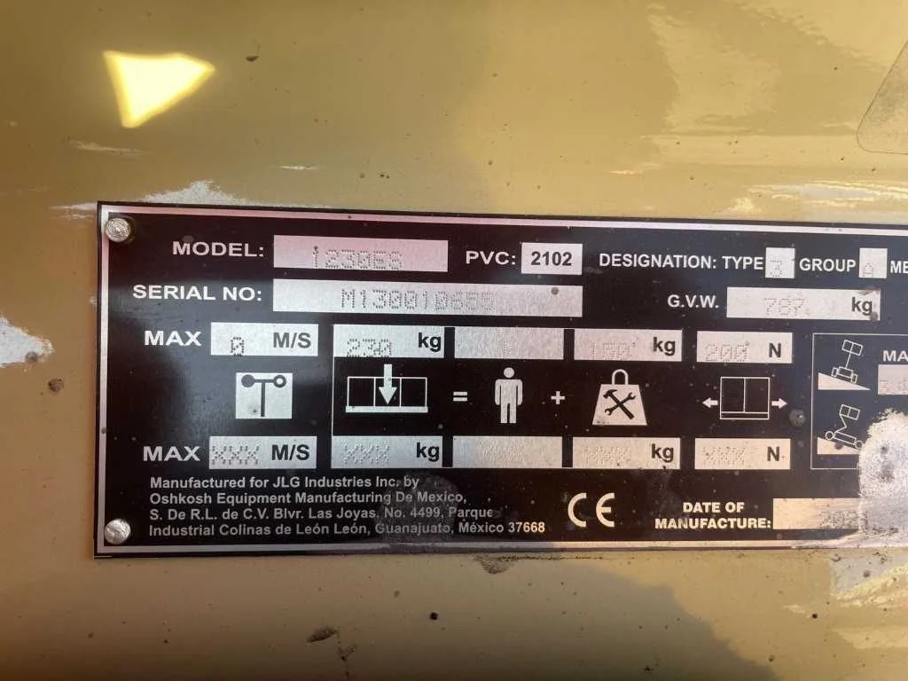 Ongebruikt Merk: JLG Type: 1230 ES Bouwjaar: 2021 Elektrisch: true Werkhoogte: 5660mm Afgelezen urenstand: 1 Eigen gewicht: 790kg Totale afmeting L: 1360mm Totale afmeting Breedte: 760mm Totale afmeting Hoogte: 1650mm