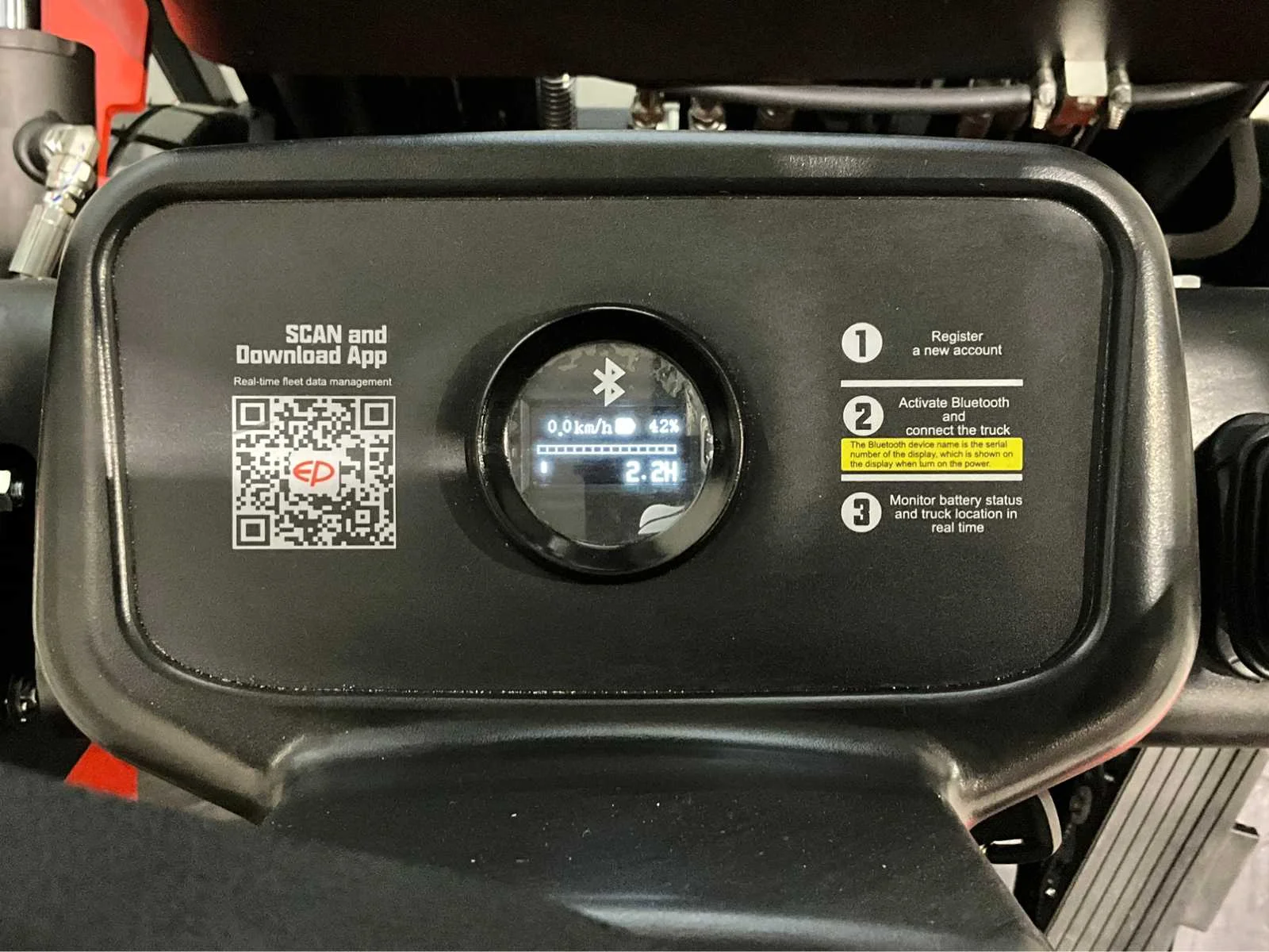 Ongebruikt , lithium accu pakket , 4e vrije hydraulische functie beschikbaar , verwisselbare accupakket , interne lader ingebouwd , bluetooth functie tot rij afstelling , led straat verlichting , blue spot Merk: EP Type: EFL 252 X Bouwjaar: 2025 Aantal wielen: 4 Afgelezen urenstand: 1 Accu lader: true Free-lift: true Side-shift: true Triple mast: true Eigen gewicht: 4570kg Hefvermogen: 2500kg Lepellengte: 1200mm Hefhoogte: 4800mm Vol rubber banden: true Totale afmeting L: 3780mm Totale afmeting Breedte: 1060mm Totale afmeting Hoogte: 2210mm